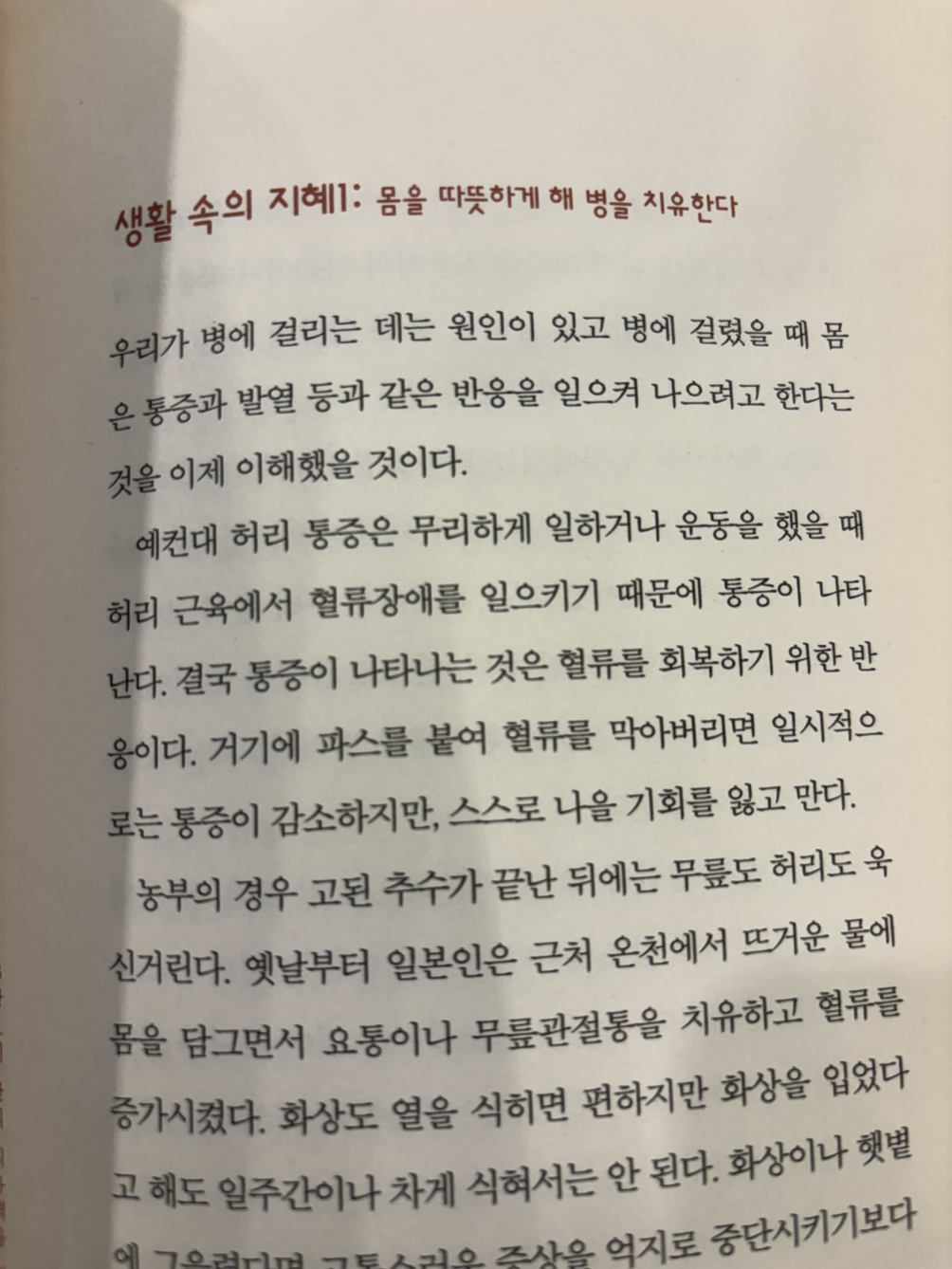 요즘 젊은이들은 몸이 좀 찬 경우가 있는데, 몸을 따뜻하게 해야한다. 그래야 암이든 뭐든, 면역력이든 높이는 데 좋다.