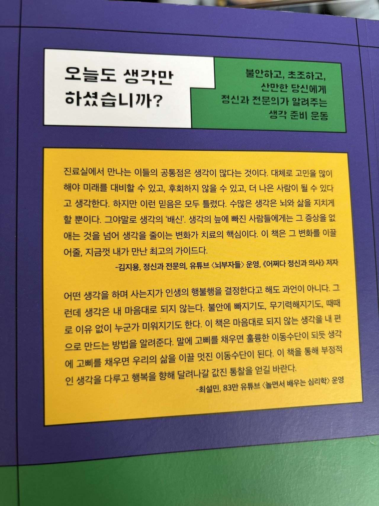 개인적으로, 저는 생각을 많이 하는 사람 중에 한 명이라서 그런지 이 책이 공감이 많이 되었습니다.