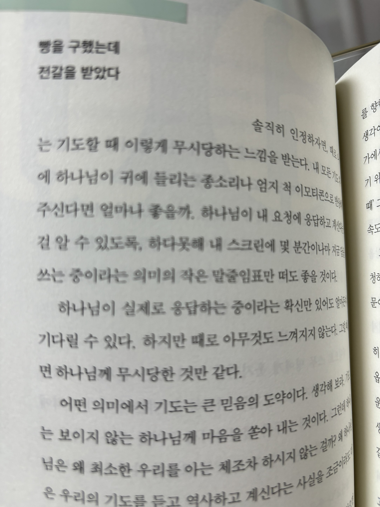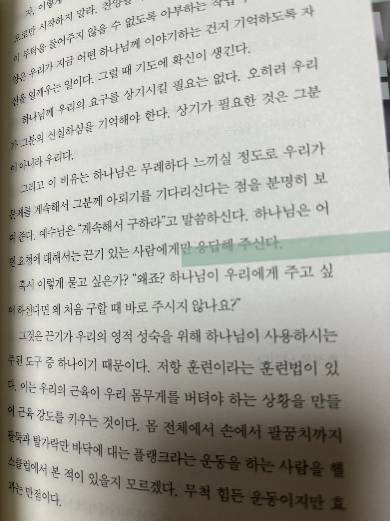 “기도의 열쇠는 믿음이다. 때로 하나님은 우리가 요청하는 대로 해 주지 않는다. 이는 우리를 사랑하지 ‘않기’ 때문이 아니라 오히려 사랑하시기 때문이다.” _p.135