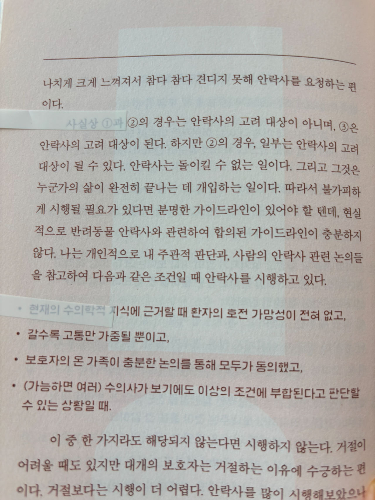 안락사에 대한 예전 동네 할머니와 버스를 타러 가는 길에 한참을 이야기한 게 있어서 안락사에 대한 글을 사진으로 담았다. 그 글을 읽고 생각한 건, 뭐든 상식선에서 통한다는 것이다.