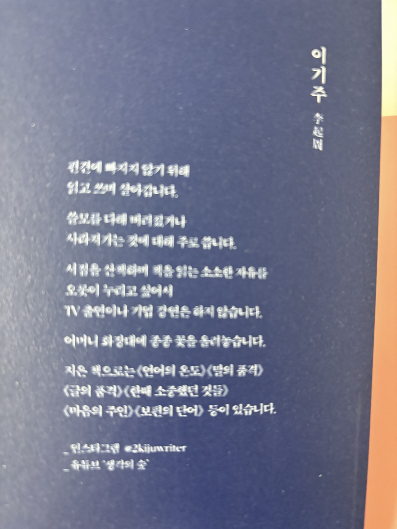 이 작가님이 나이가 많은 많은 여자분이라고 생각했어요. 이름에서 풍기는 게 저에게는 그랬거든요.