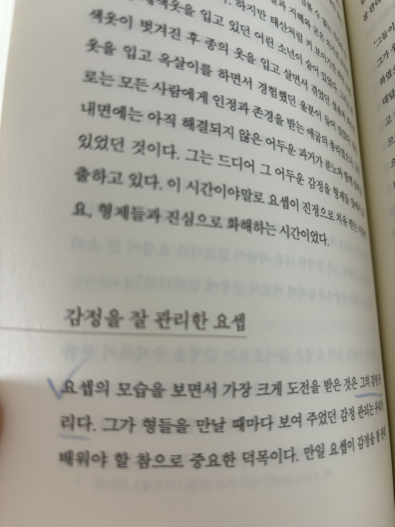 요셉이 그래도 축복을 받았으니, 형들에게 저런 자비를 베풀지 않았나? 이런 생각도 든다. 만일 요셉의 삶이 처음부터 끝까지 힘듦으로 끝났다면 요셉은 그 이기심이 많은 형제들을 감쌀 힘이 있었을까 싶기도 하다.