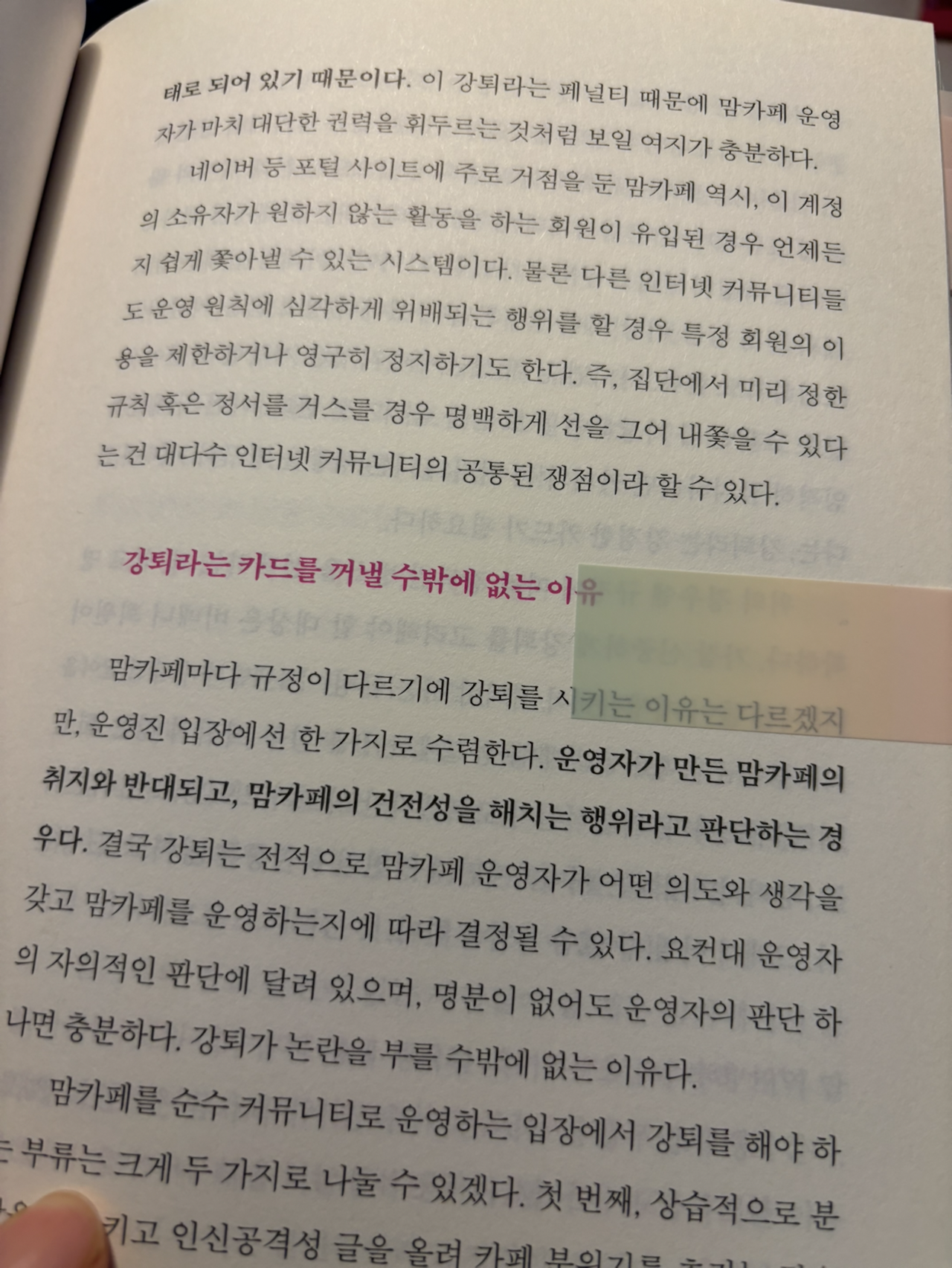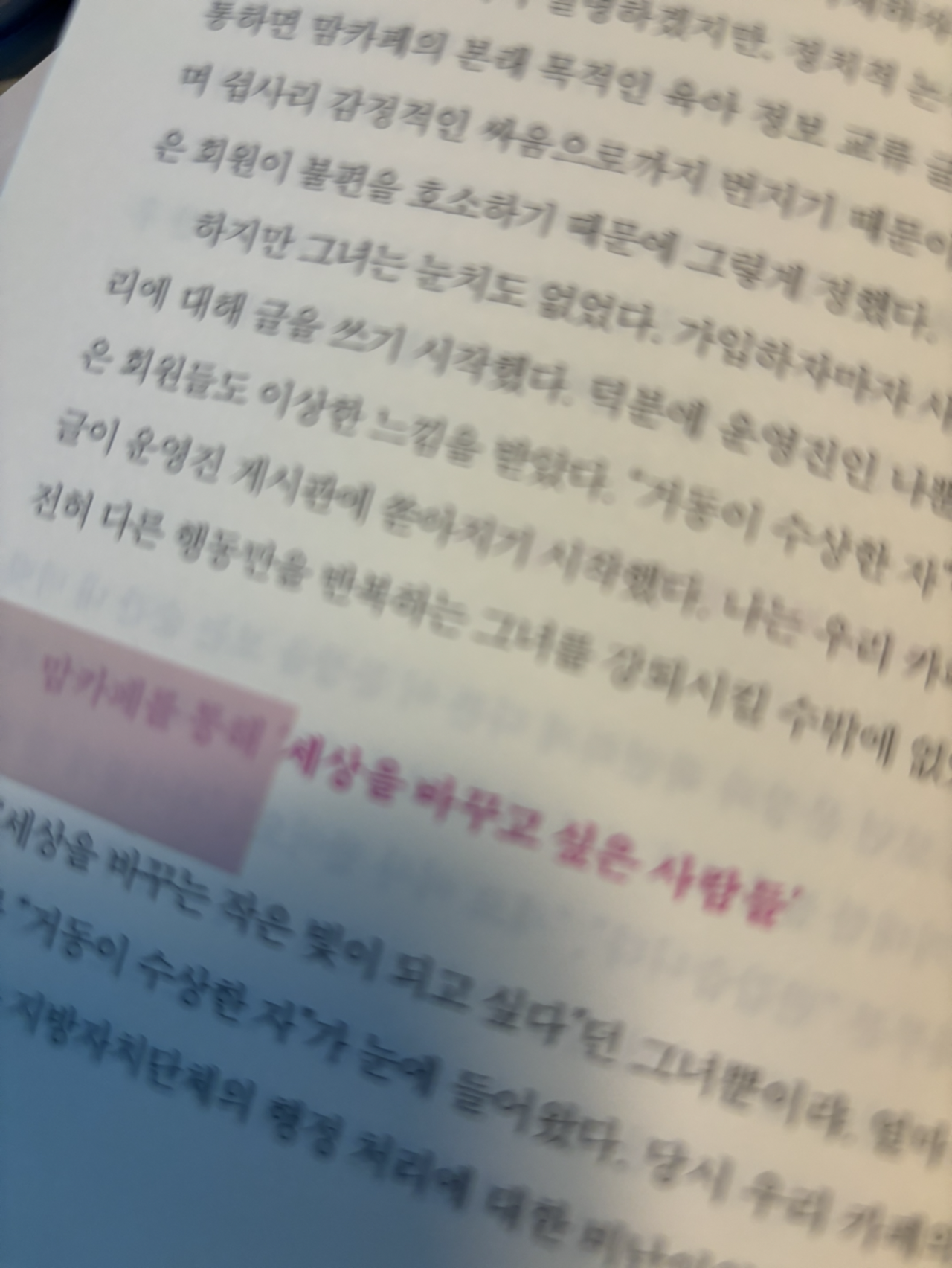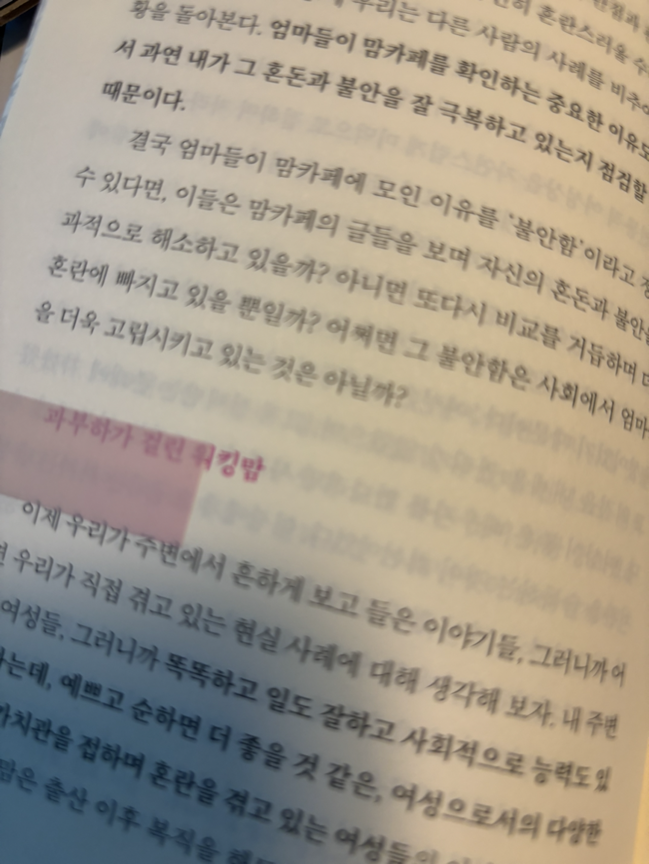 맘카페에 대해 부정적인 시각을 가질 수밖에 없습니다만, 이 책을 읽고는 공감이 되기도 했고 또 변하지 않는 사회 속에서 엄마들이 할 수 있는 것이 무엇일까, 이런 것이 최선일까, 여러 가지를 생각해 보게 되었습니다.