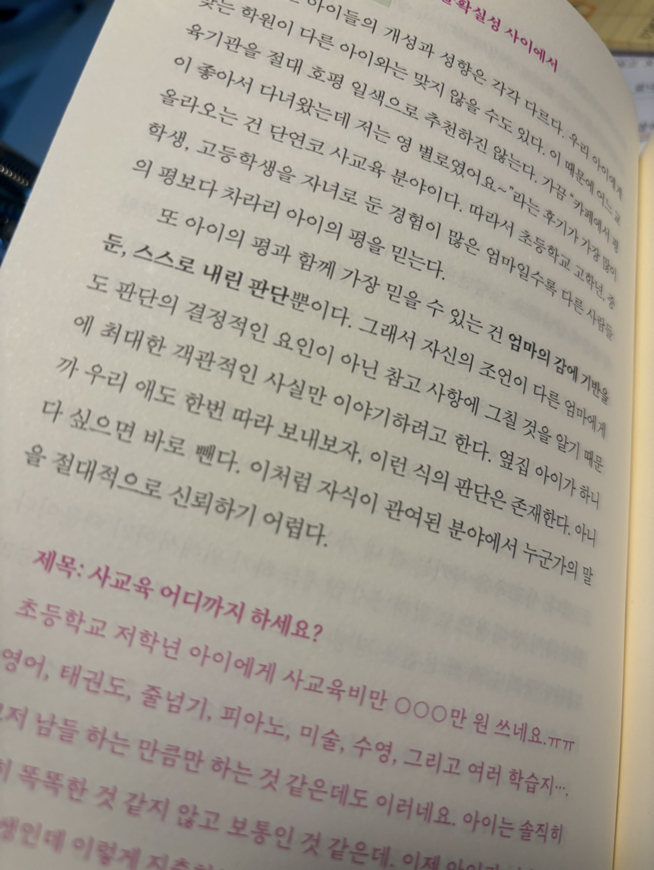 이런 책의 부류는 금방 읽게 됩니다. 그런 이유는 제가 아이들을 모두 대학에 보냈기 때문이기도 하고, 또 제반지식이 있어서 훌훌 넘어가기도 하는 것 같습니다만..