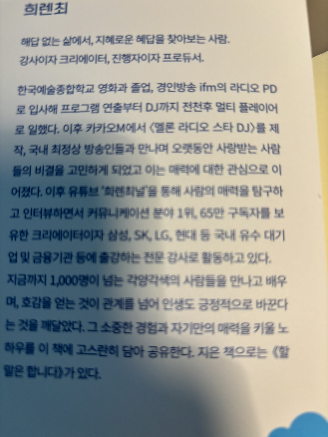 이 저자 분은 잘 몰라요. 라디오 피디, 강사,크리에이터, 진행자 및 프로듀서라고 하십니다. 대기업에도 전문 강사로 활동하고도 있다셔요.