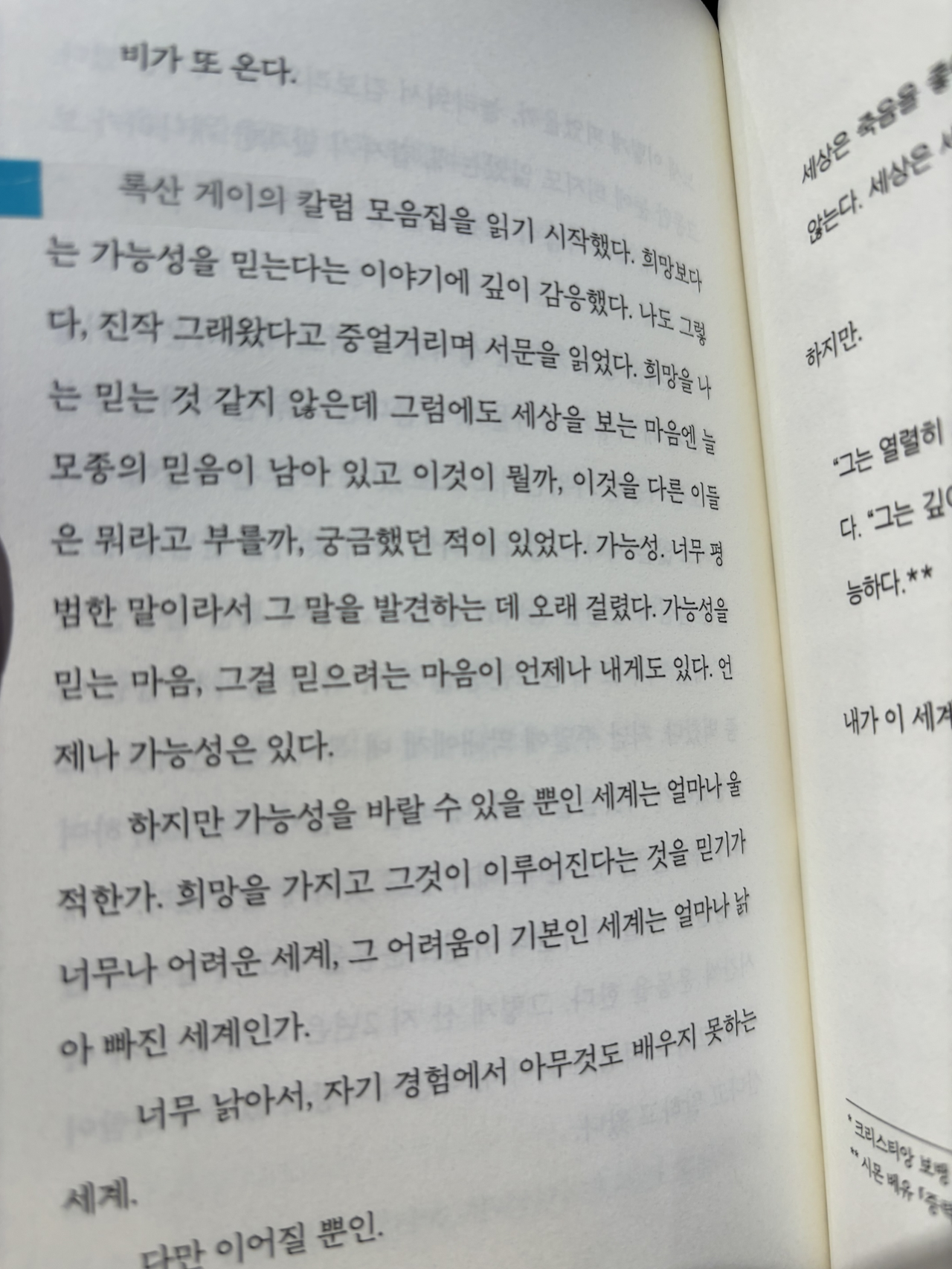 거기에 내비친 글들과 생각, 그리고 그때의 감정을 비슷하게 느낀 사람으로 반갑기도 했고 무엇보다 그녀의 사람 시원하게 표현하는 문장이 답답했던 내 마음을 뻥~ 뚫어주는 것 같다는 생각을 했다.