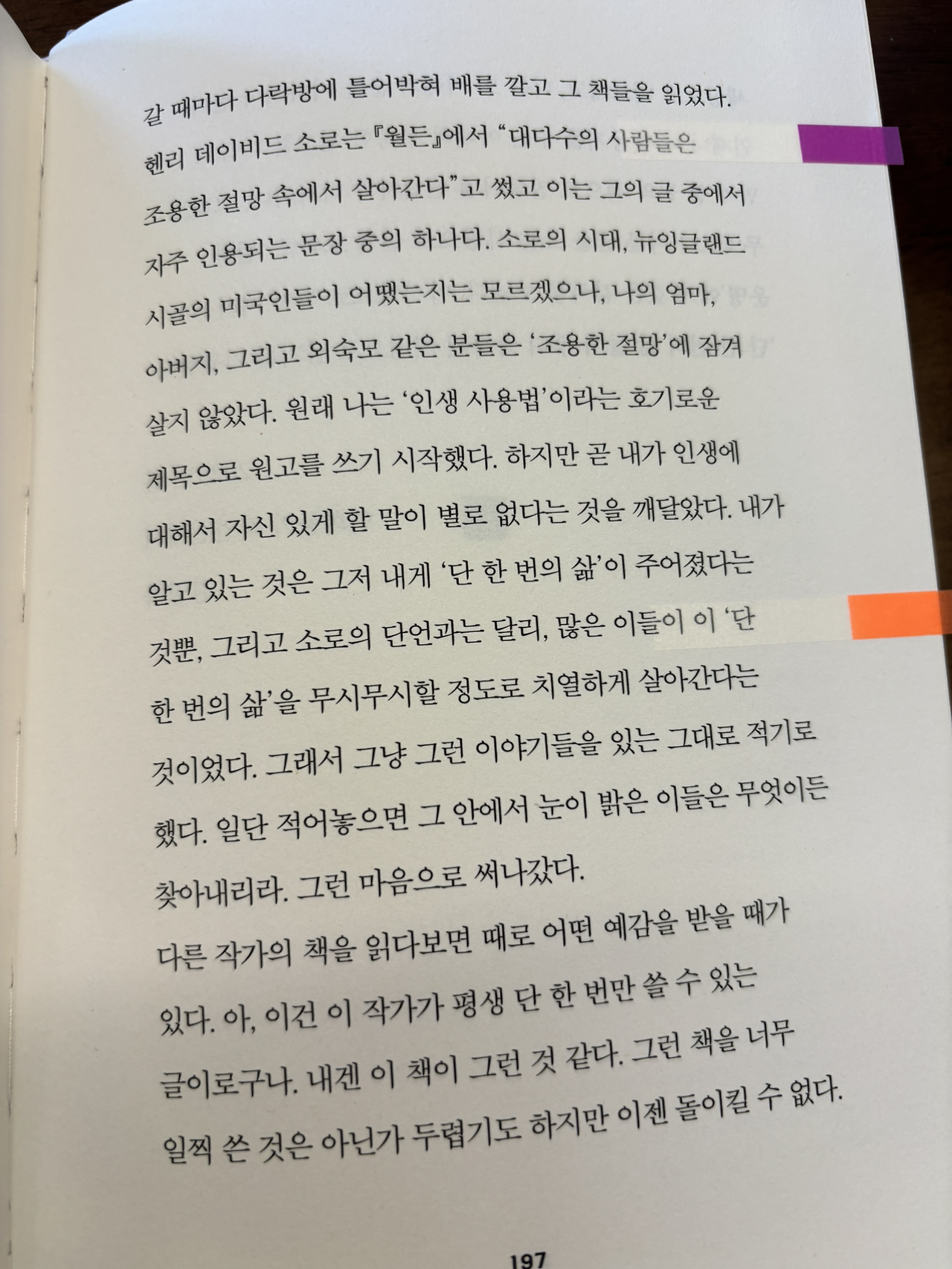 “소로의 단언과는 달리, 많은 이들이 이 ’단 한 번의 삶‘을 무시무시할 정도로 치열하게 살아간다는 것이었다.”