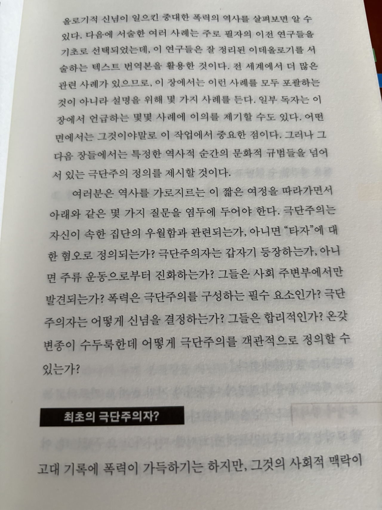 ‘극단주의‘라는 큰 제목과 이 책에 대한 부연 설명까지 읽게 되면 이 책의 전반적인 내용이 상상이 간다.