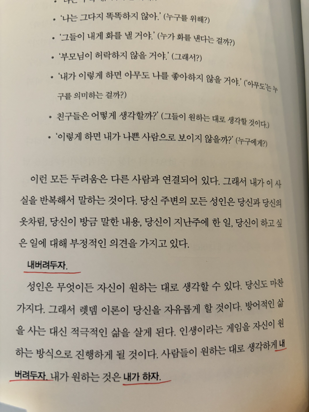 하지만 이 책을 읽고는 그냥 “렛 뎀!”이라고 생각하고 입 밖으로 말하는 게 나 스스로를 위해서 나 스스로의 힘을 위해서도 중요하다는 것을 깨닫는다.