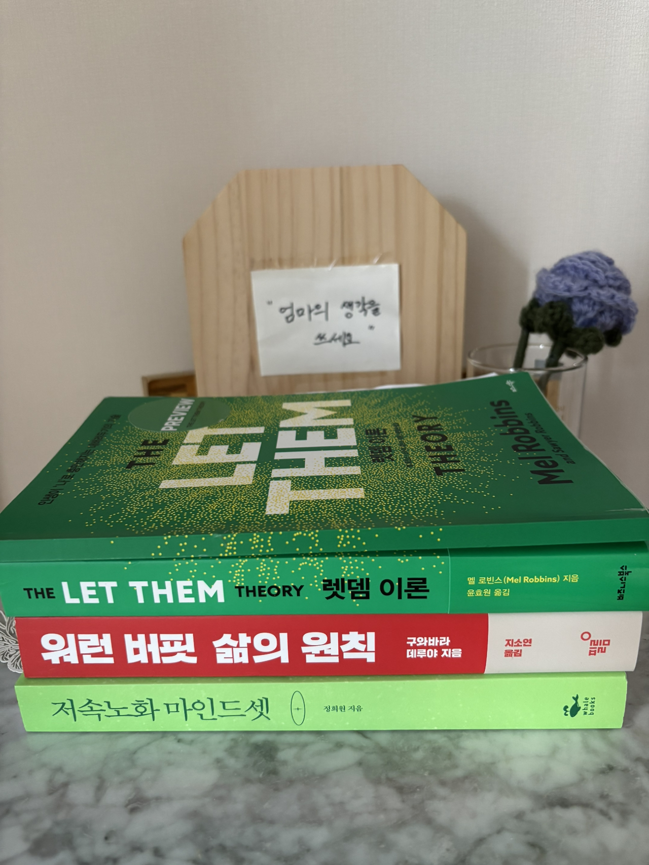 그리고 이 책은 ’ 내버려 둬!‘ 그걸 영어로는 렛뎀, let them 이라고 하는 흥미롭고 신기하고 하지만 제게는 상당히 도움이 되는 컨셉입니다.