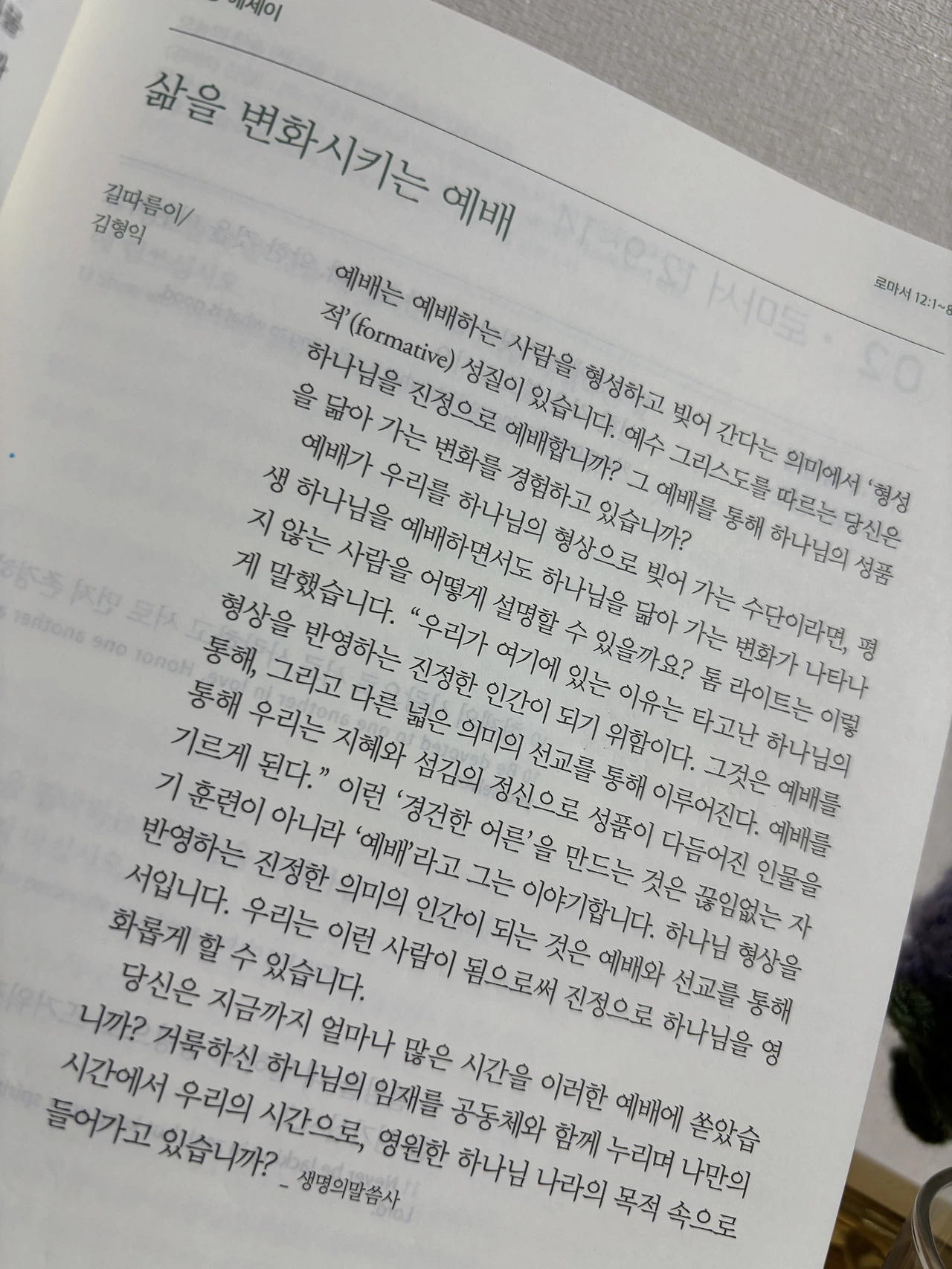 “이 세대를 본받지 말고 (…)”