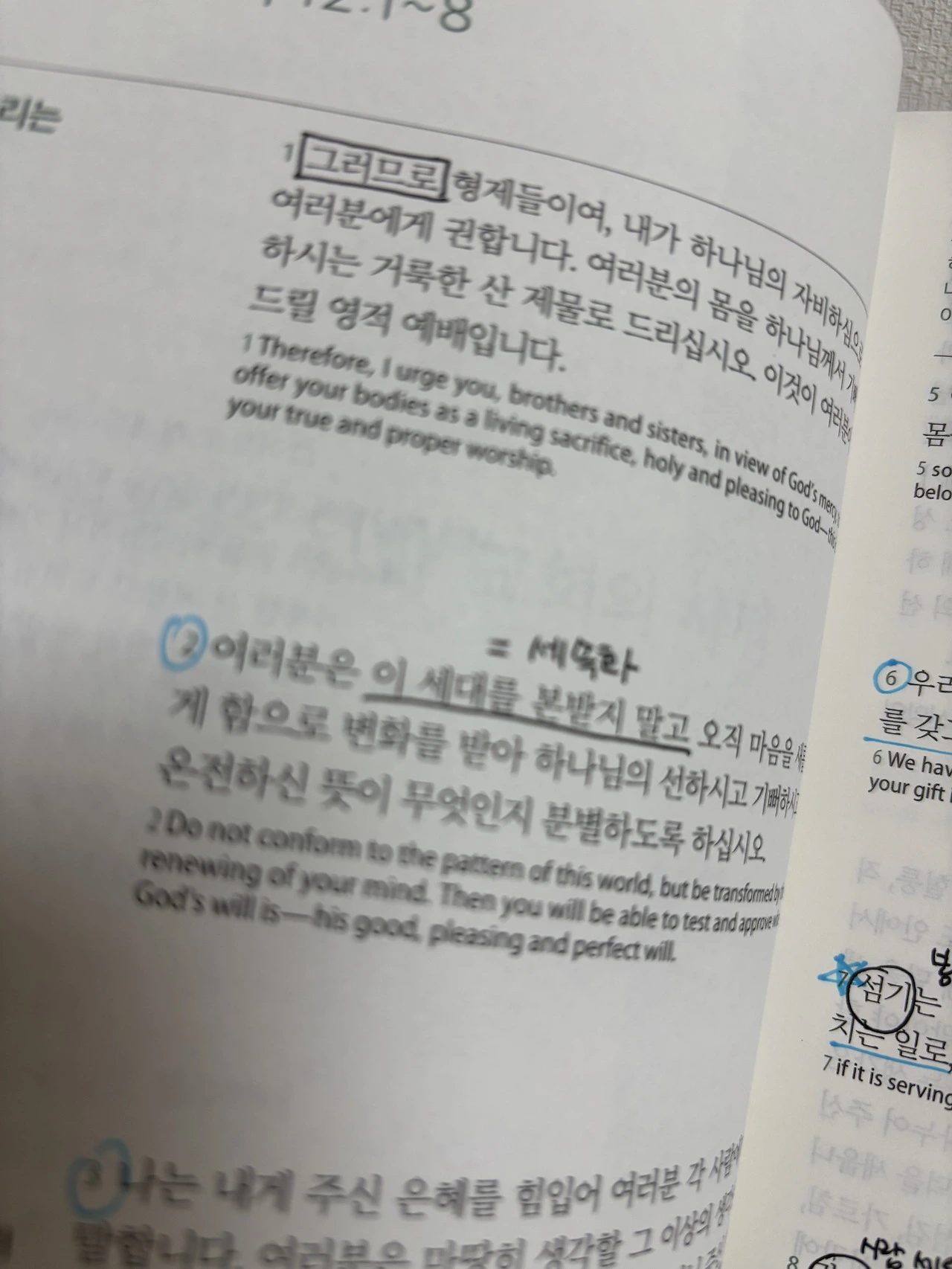 목사님은 밑줄과 동그라미를 치라고 하는 분이 계신데, 동그라미를 친 곳이 겹친다.