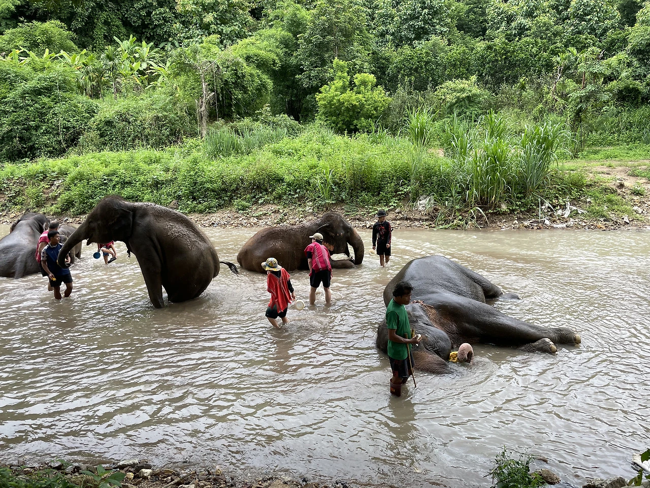 코끼리 보호소에서 아빠와 아이는 코끼리 목욕도 시켜주었다.