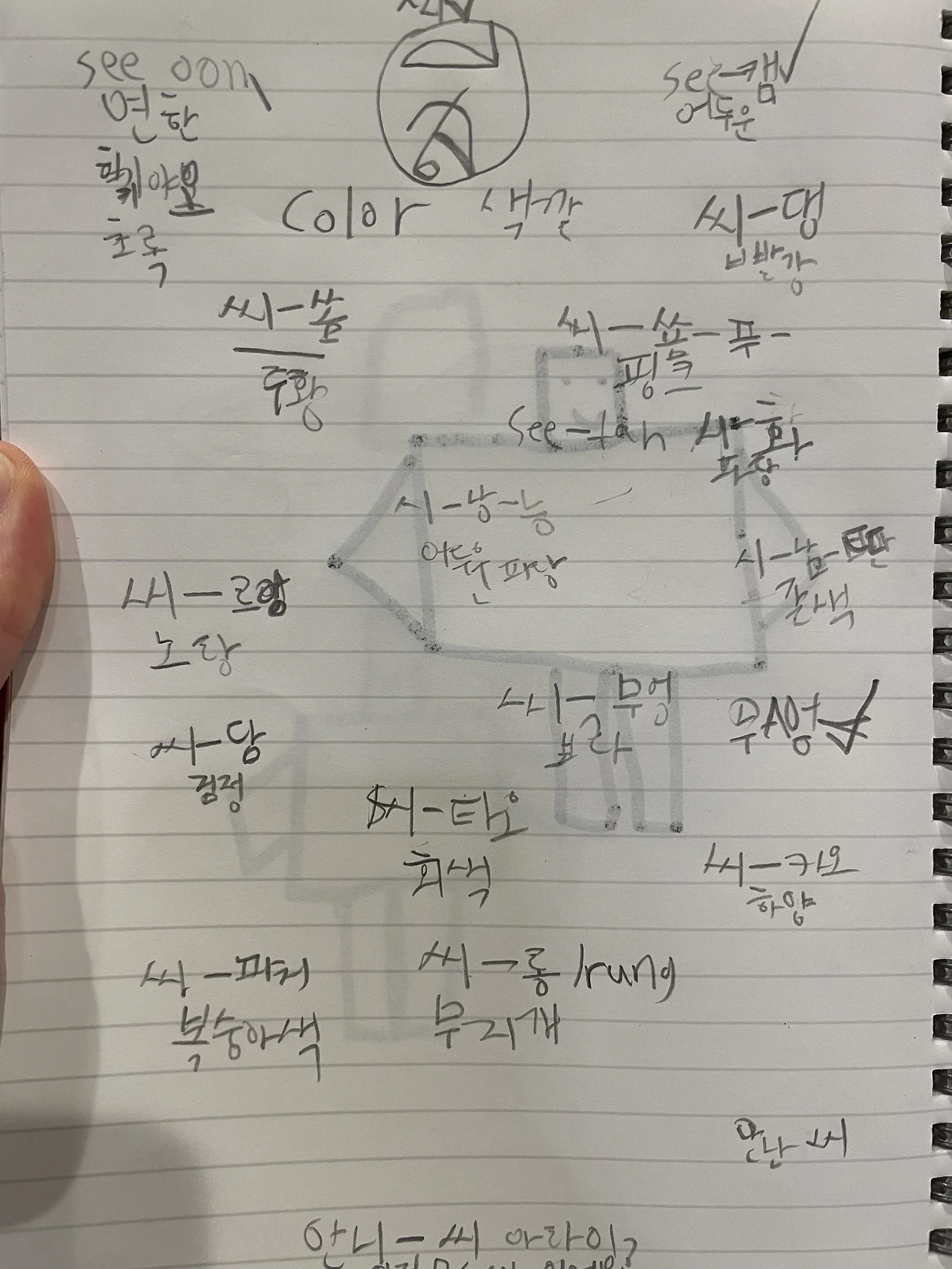 태국어로 자기소개, 색깔, 숫자 등을 배워왔고 매일 나에게 자랑하며 들려주었다.