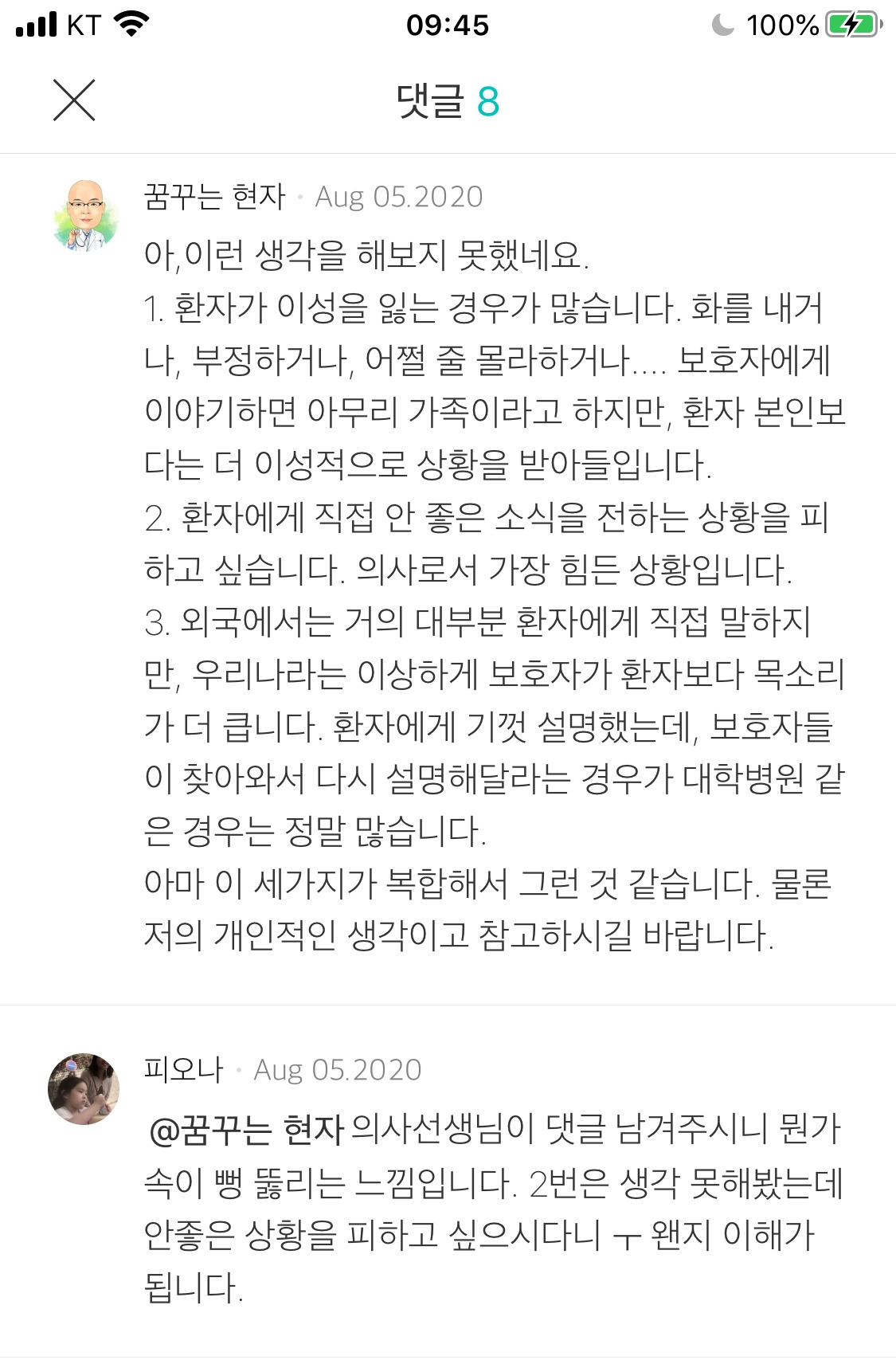 시작은 내가 쓴 글 "의사는 왜 심각한 상황에서 보호자에게 말할까?"의 글부터였다.