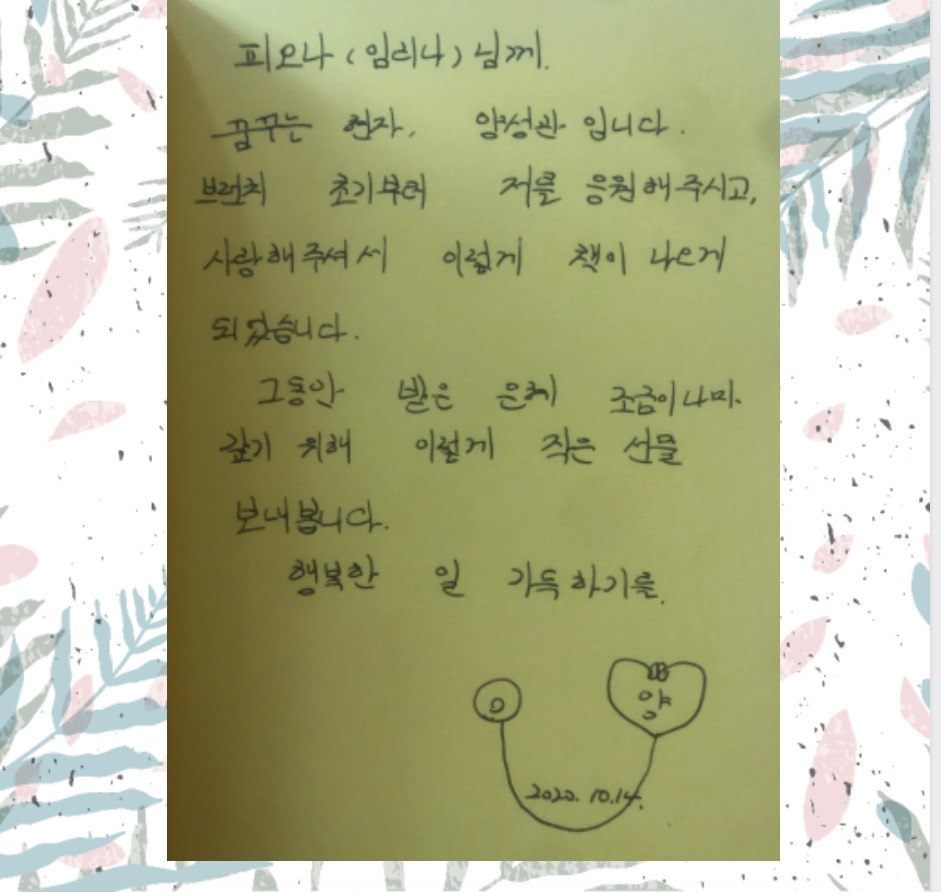 그리고 진짜 책이 많이 팔렸으면, 앞으로도 좋은 글을 많이 써주었으면 하는 응원하는 마음을 전하고 싶었다.