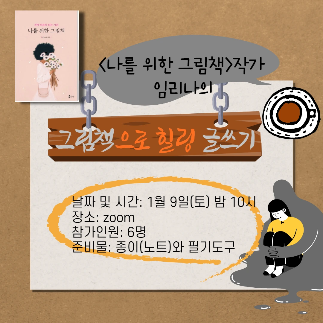 글 잘 쓰는 거 배우는 프로그램 아니고요. 말 그대로 힐링 글쓰기입니다. 글 잘 쓰고 못쓰고 상관없고요. 그림책도 몰라도 상관없습니다. 글 미리 써오는 거 아니고 당일에 쓸겁니다. 종이는 넉넉하게 볼펜은 좋아하는 걸로 준비해 주세요. 신청은 아래 링크로 해주세요.