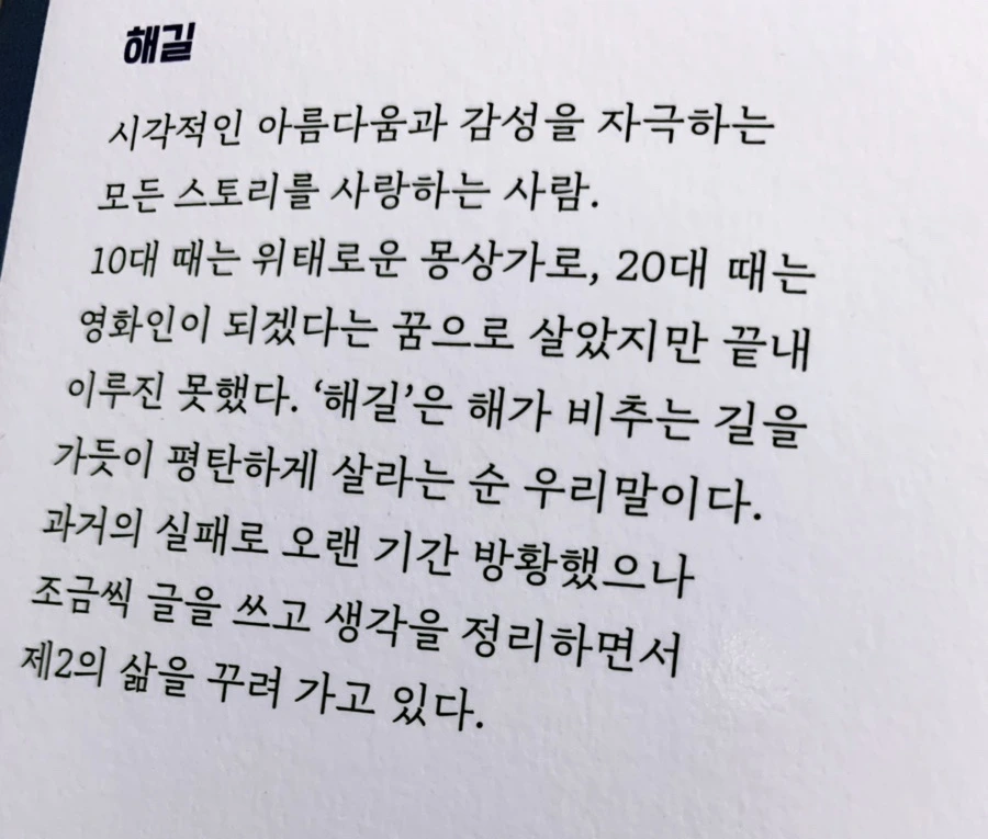 나는 그런 해길 작님에게 인터뷰를 한 첫 번째 독자로 기억되고 싶기도 했다.
