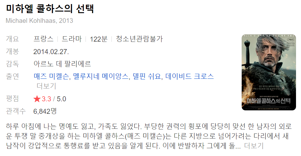 <미하엘 콜하스>로 이백년도 전인 1800년대 소설이다. 나는 소설을 읽어봤지만 소설보다는 영화를 권하고 싶다.