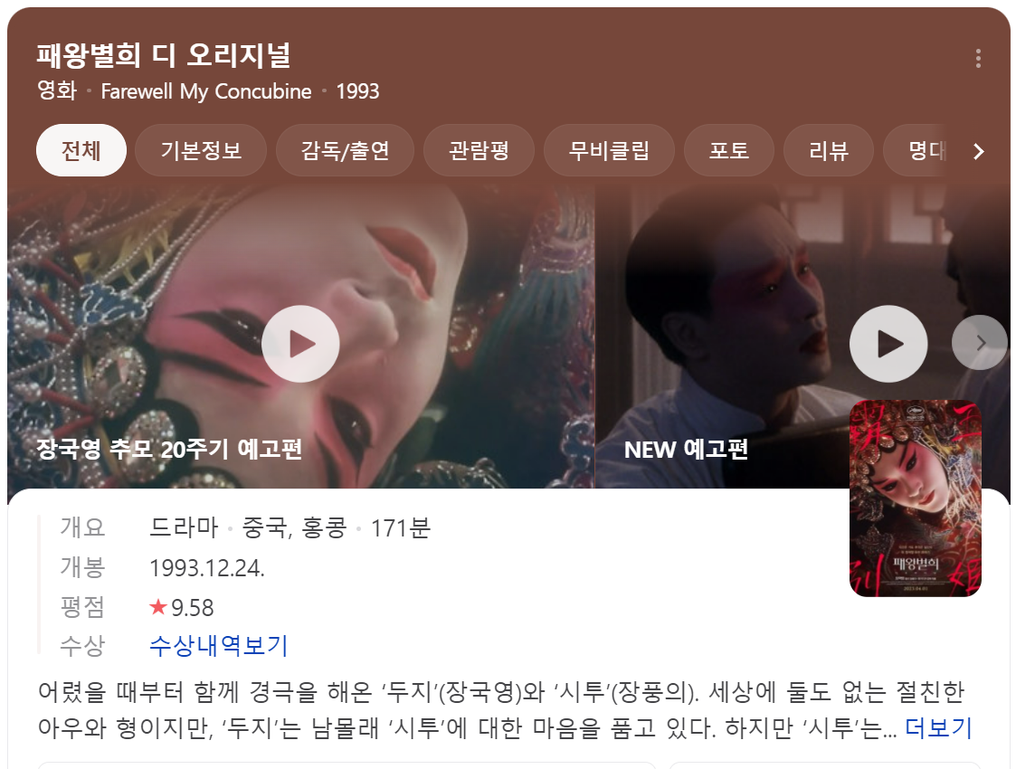 <패왕별희>는 장국영이 나온 영화로 정말 유명하다.