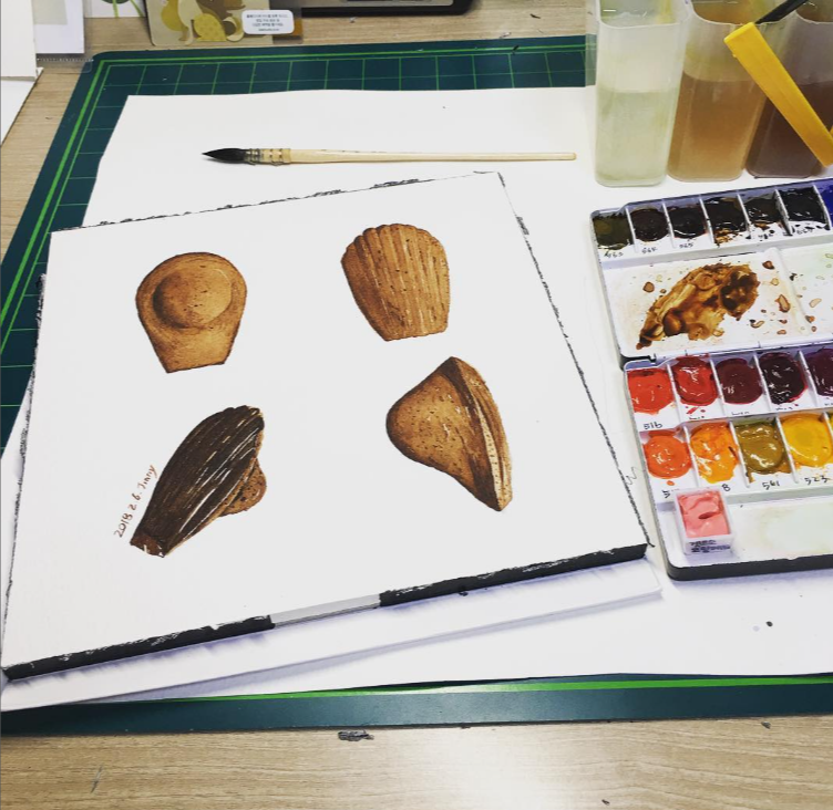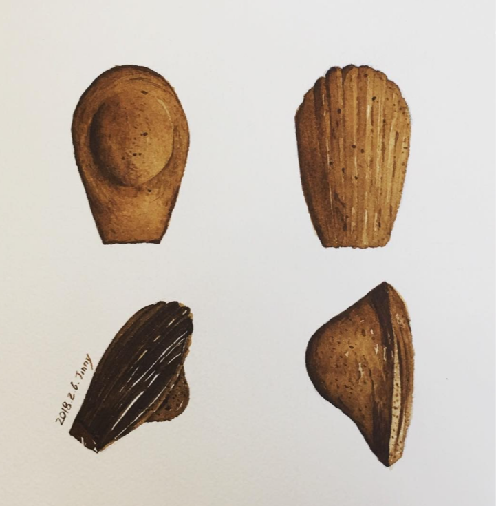 책을 보며 매일 따라 그리던 어느 날, 마들렌 카페를 오픈한 지인에게 그림 선물을 하고 싶었다. 마들렌 사진을 검색하고 백 장 넘는 사진을 저장했다. 그중 내가 그릴 수 있을 것 같은 각도의 사진을 추려놓고 밤이 되길 기다렸다.
