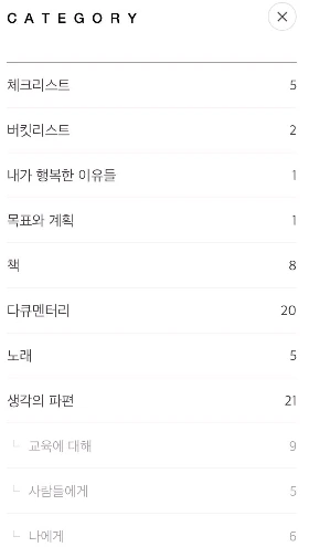 새 노트에 내키는 대로 나의 생각들을 적어가는 것도 좋지만, 추천하고 싶은 방법은 블로그를 이용하여 나의 생각의 창고를 만들어보는 일이다. 블로그가 오픈된 공간이어서 꺼려진다면, 전체 포스트 혹은 해당 카테고리 전체를 비공개로 설정할 수 있으니 딱히 걱정하지 않아도 된다고 말해주고 싶다. 블로그가 추천하는 이유는, 나의 생각과 걱정을 정리하고 더욱 탄탄하게 담아내려면 계속 손을 봐야 하는데, 지속적으로 수정하고 카테고리화하고 검색을 통하여 다시 찾아보기 쉬운 장점을 블로그가 지니고 있기 때문이다. 걱정을 완화시켜주거나 나를 위로해줄 문구, 나의 주장들을 뒷받침해줄 자료들을 단순히 복붙만 시키면 되는 편리성도 지니고 있다.
