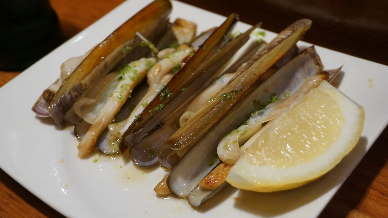저 길쭉한 조개 요리. 우리나라에선 맛조개로 불리는 바로 그것.
