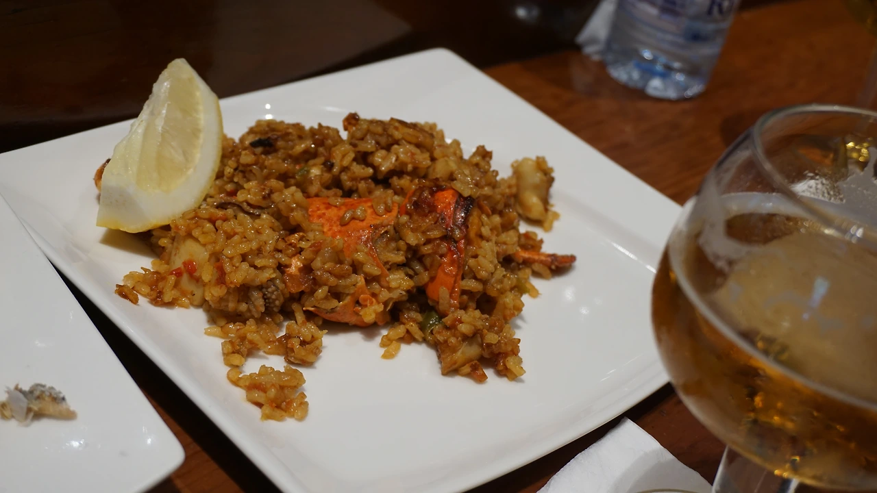 버터와 허브로 간단하게 맛을 낸 요리인데 한국인들 입맛에 아주 딱 맞았다. 모두가 감탄하면서 먹었다. 또 바게트 빵과 소고기 스테이크, 크랩이 들어간 빠에야를 주문해서 먹었다. 바에 앉아서 먹다 보니 직원들이 그때그때 괜찮은 메뉴를 추천해주기도 한다. 타파스는 대부분 짜다. 음식이 짜면 술이 더 들어가게 되었으니, 일부러 짜게 만든다는 이야기가 있다. 우리도 어쩔 수 없이 맥주 한잔씩.^^