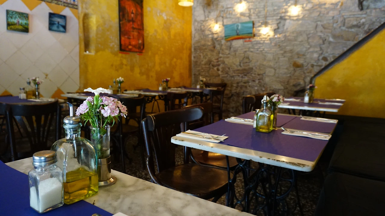 '메누델디아'라는 글자를 보고 여기다 싶어 들어왔다. 자세히 보면 테이블이며 의자며 많이 낡아있지만 오랜 시간 정성스럽게 가꾼 표가 나는 곳이었다. 테이블마다 놓인 꽃은 어쩜 전부 다른 모습을 하고 있었고 누가 봐도 오늘 아침 사다 놓았다는 것을 알 수 있을 정도로 싱싱했다. 벽에 걸린 그림도 느낌이 좋아 한참 들여다봤는데 자세히 보니 판매하는 작품이었다. 저렇게 정성스럽게 준비된 테이블을 보면 누구라도 지나가다 앉고 싶을 것 같았다. 내가 올 때까지만 해도 이렇게 사람이 없었는데 내가 나갈 때쯤엔 꽉 차더라고.