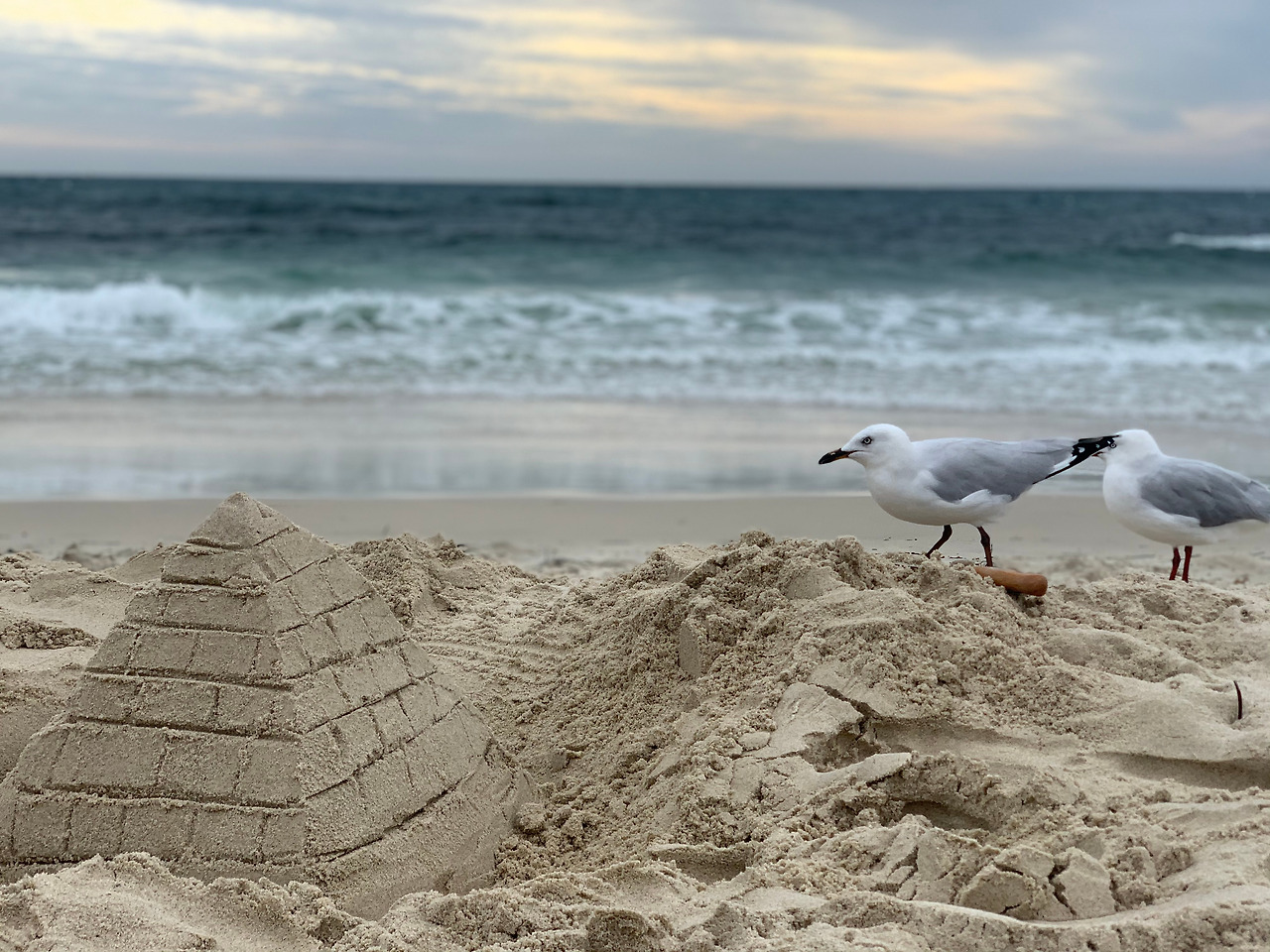 우리의 계획은 해변에서 모래성을 만들고, 석양을 감상한 후 저녁을 먹으러 가는 것이었다. W가 이 계획을 단숨에 전할 때 마음이 콩닥대지 않았다면 거짓말이다. 왠지 로맨스 영화 속 주인공들의 첫 데이트 코스 같았다고 하면 너무 순진한 소녀같을까. 그저 코스가 그리 짜진 것뿐이었다만, 자주 드라마와 영화 속에 사는 나는 이런 순간을 놓치지 않고 만끽하기 일쑤다. 귓가에 달콤한 BGM을 불어넣으며 그 순간들이 얼마나 로맨틱할까 잠깐 상상에 나래를 펼쳤다. 그러나 상상과 현실이 언제나 같진 않지. 상상에는 매서운 바닷바람 따위는 없었으니 말이다. 살랑거리는 바람에 살짝살짝 내리쬐는 햇빛뿐이었는데, 현실의 날씨는 흐리고 매서웠다. 공들여 준비한 우아한 자세는 바닷바람과 모래들에게 머리칼과 뺨을 내어주고는 두 손 두 발을 다 들었다. 이왕 이렇게 된 거 모래성이나 열심히 만들자고 마음먹고는 헝클어진 머리를 내버려 두고 놀이터에 나가 놀던 10세 어린이 모드가 되어 신나게 모래성을 쌓았다. 열심히 만들고는 인증샷도 멋지게 찍고 싶었지만 바람은 이를 허락해주지 않았으니. 그래도 모래성을 쌓으며 여러 종류의 주제로 대화를 나누었다. 어떤 대화들이었는지는 어렴풋하나 분명 모래성은 좋은 대화의 매개가 되었다.