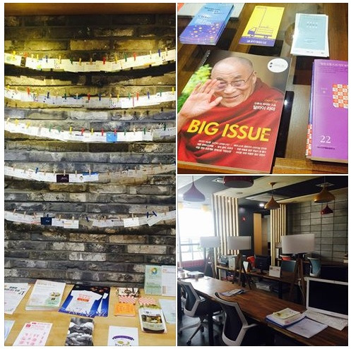 사회적경제조직에서 일하고 있는 이들의 명함이 꽂혀 있고 각 기관의 홍보 브로셔가 가지런히 놓여 있는 오픈 공간은 물론 입주기업들의 사무실, 다양한 행사가 열리는 공간들이 잘 어우러져 있다. 50 플러스센터가 바로 옆에 있어 지역주민들의 오고 감도 꽤 있다. 플랫폼으로써의 역할을 기대하게 된다.