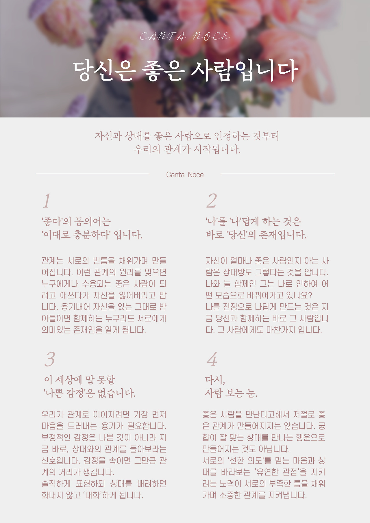칭찬도 평가도 아닙니다. 인정하는 말. 당신은 좋은사람입니다.