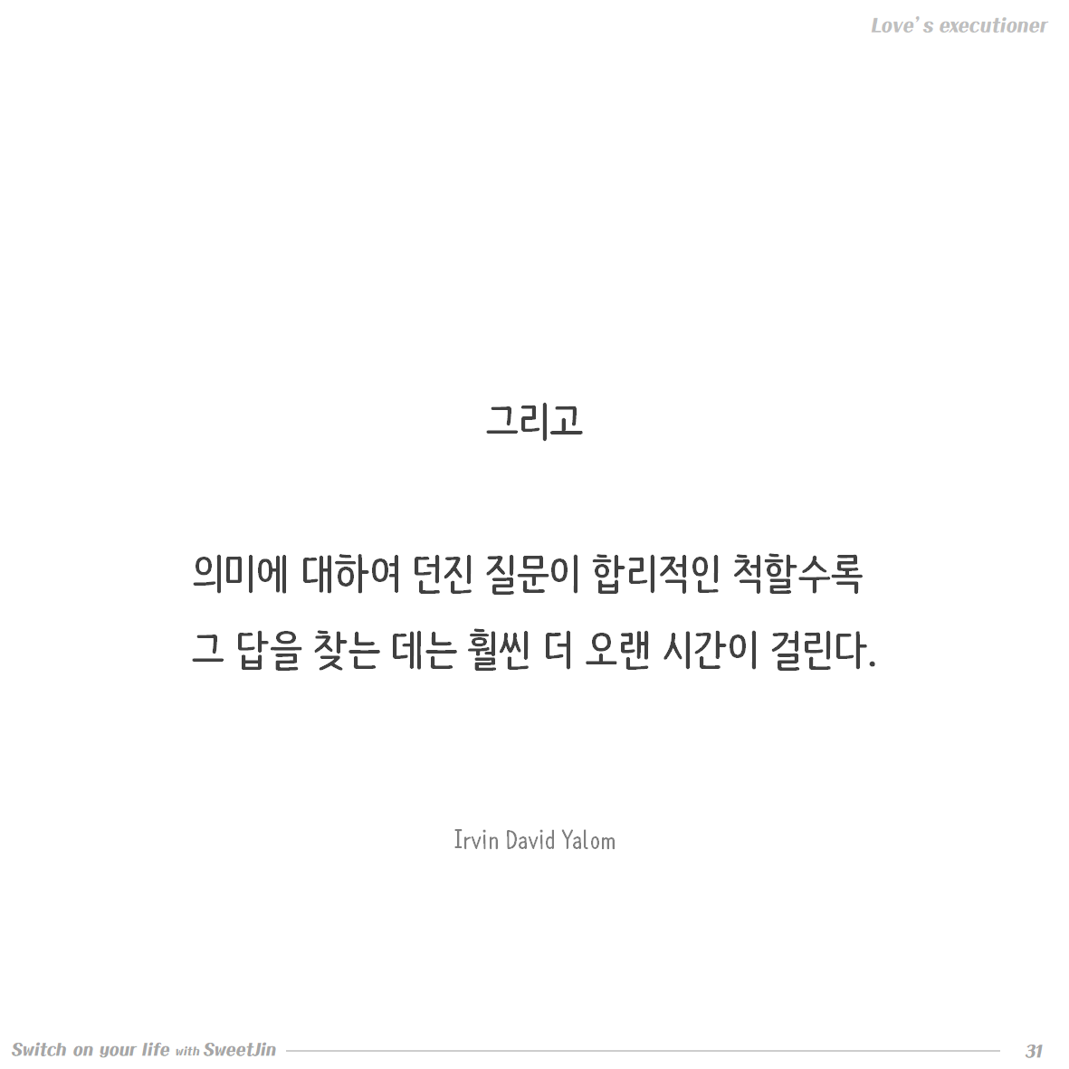 출처 : 어빈 얄롬 / 나는 사랑의 처형자가 되기 싫다. 실존주의 심리치료