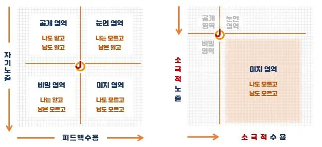 ‘미지의 영역’을 줄이려면 적절한 자극조건이 필요한데, 이 때 타인과의 관계가 우리에게 새로운 것들을 경험할 기회를 준다. 자신을 지키는 동시에 다른 사람과도 건강하게 연결되려면 관계에 대해 열린 태도를 갖는 것이 중요하다. 익숙한 모습에 머물러있기보다는 관계속에서 직접 표현하고 경험하며 상대의 피드백을 통해 자신을 적극적으로 돌아볼 수 있는 기회를 늘려가는 것이 중요하다.