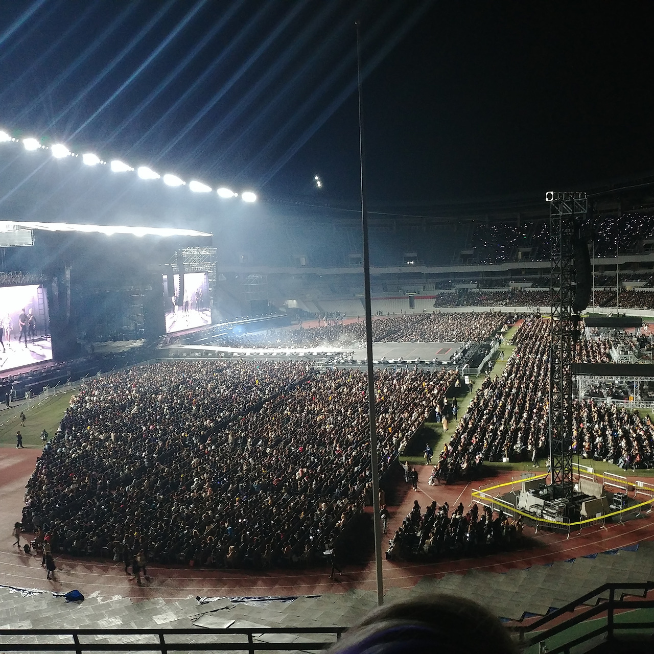 긴 화장실 줄을 서느라 공연 시간에 임박하여 공연장에 들어왔다. 자리에 앉자마자 눈 앞에 펼쳐진 거대한 무대와 가득 찬 관중에 가슴은 터질 것만 같았다. 순간 눈물이 움찔 났던 것 같다. 비록 눈 앞이 아닌 멀리서 형체만으로 보는 콘서트지만 모든 건 완벽했다. 오늘 목이 다 쉬어버리는 것을 목표로 지난주에 걸린 감기를 낫게 하고자 아무리 아파도 병원 따위는 안 가는 내가 지난주 병원에 가서 약을 타서 꼬박꼬박 챙겨 먹고 좋은 컨디션으로 출발했었다. 그렇게 그들을 보러 가는 것이 아닌 그들에게 보여주기 위해 간다는 3층 관람자로서 준비를 마친 것이다. 그렇게 한 마리의 반딧불이처럼 멀리서 반짝이는 작은 응원봉 불빛이 되어 그들에게 나를 열심히 보여주었다. 비록 나는 그들을 화면으로밖에 볼 수 없었지만.