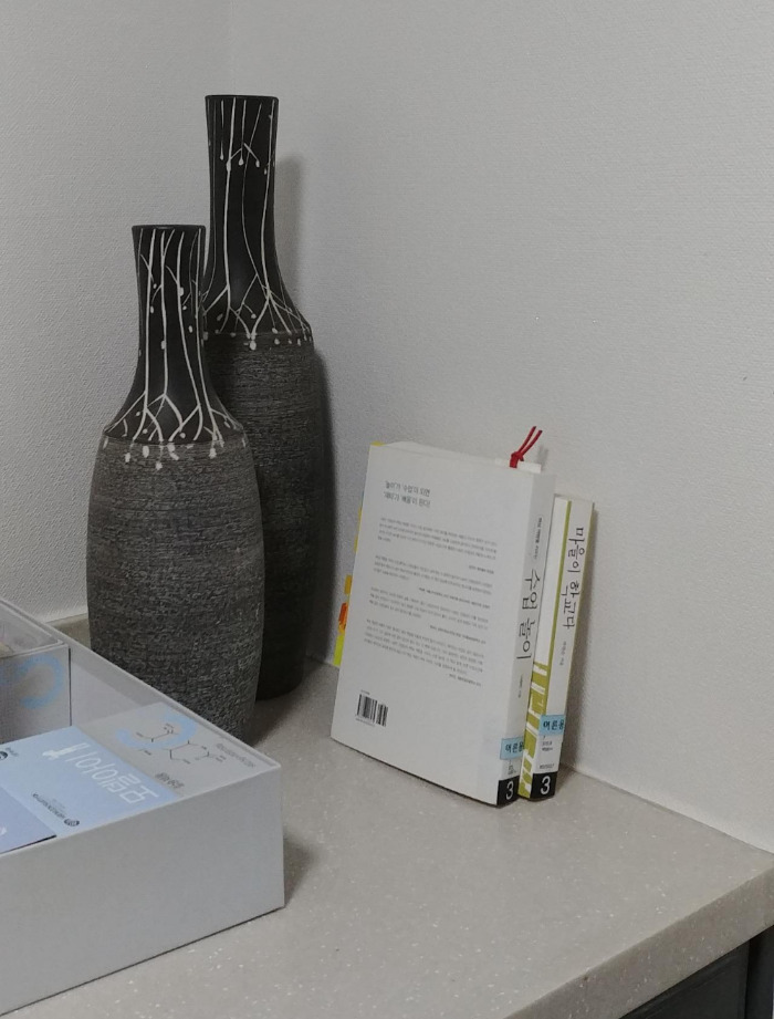 급한 반성을 하며 주위를 둘러보니, 곳곳에 먼지와 찌든 때들이 보였다. 걸레를 들고 평소에 못 본 척 지나갔던 구석진 공간들을 닦았다. 책들이 삐뚤빼뚤 쌓여 있던 죽은 공간을 치우고, 구석으로 밀려나 있던 화병을 그 자리에 두었다.