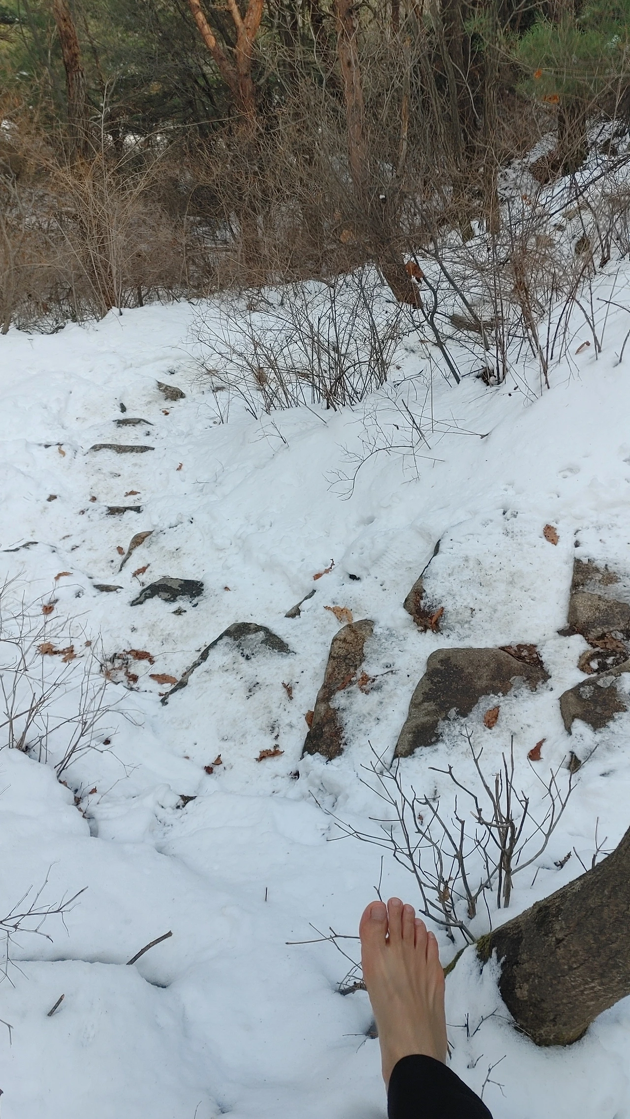 하지만 작년 보다 눈길에서 맨발로 걷는 능력이