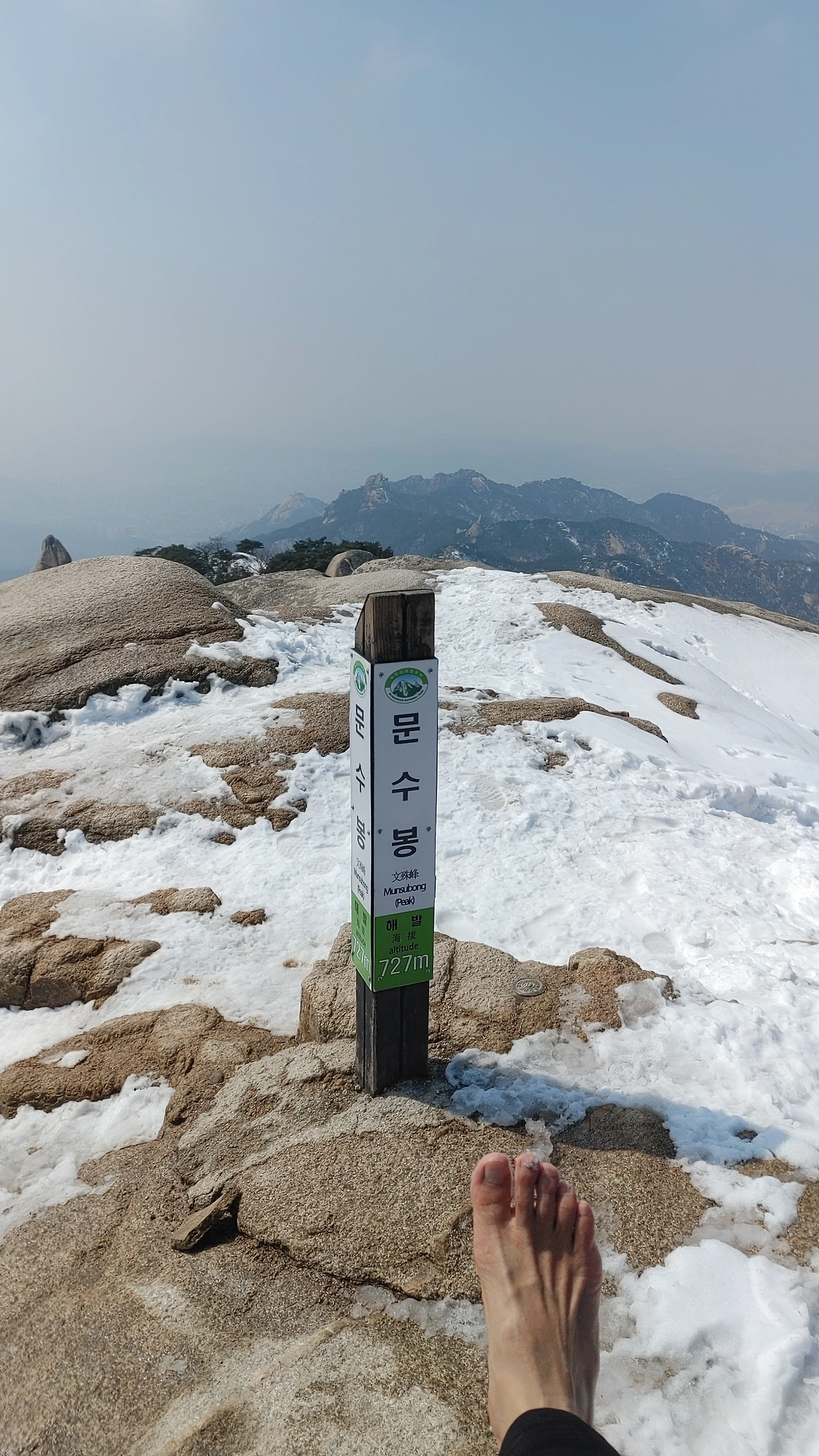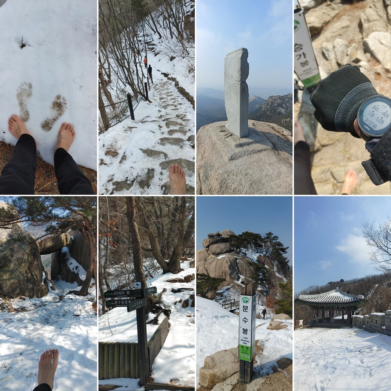 책 출간 직전, 조바심도 달래고 바쁘다며 못했던 맨발 걷기도 하려고 애정하는 불광동으로 갔습니다. 3월 북한산은 아직 겨울이라는 것을, 여러 해 경험했기에 주저함은 없었습니다. 불광동에서 김치콩나물 국밥으로 배도 든든히 채웠겠다. 모처럼 설렘 가득 출발했지요.
