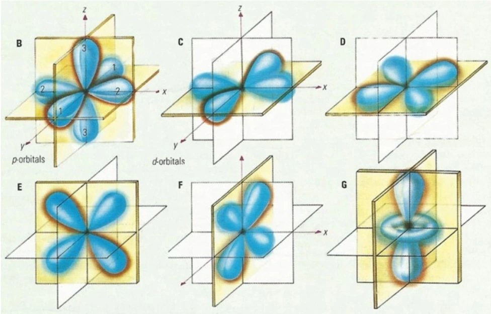 전자에 대해 이야기를 하자면, 일반적으로 분자를 이루는 원자 주변으로 전자는 끊임없이 일정한 공간을 갖고 존재합니다. 존재한다라고 표현한 것은 하이젠베르크의 불확정성 원리에 의해, 전자는 관측자의 관측 행위에 의해 즉, 빛 에너지에 의해 전자의 운동량은 크게 영향을 받기 때문에, 정확한 운동량을 관측할 수 없고 이에 따라 원자 내에서 전자의 특정한 위치를 찾는다는 것은 불가능한 일입니다. 따라서 원자 내에서 전자는 어떤 궤도 내에서 어떻게 운동하며 어디에 있다라고 표현할 수 없으며, 대략적으로 어디쯤에 확률적으로 존재할 가능성이 높다라고 표현해야 합니다. 이것이 각 에너지 준위를 갖는 전자껍질인 오비탈의 정확한 개념입니다.