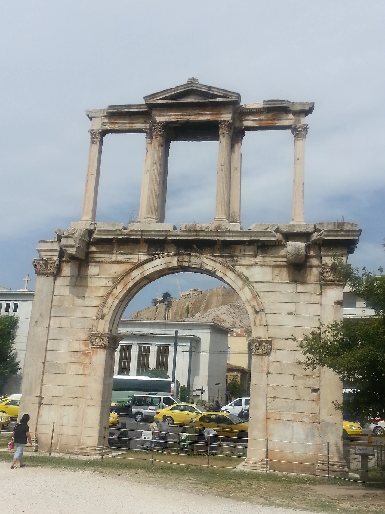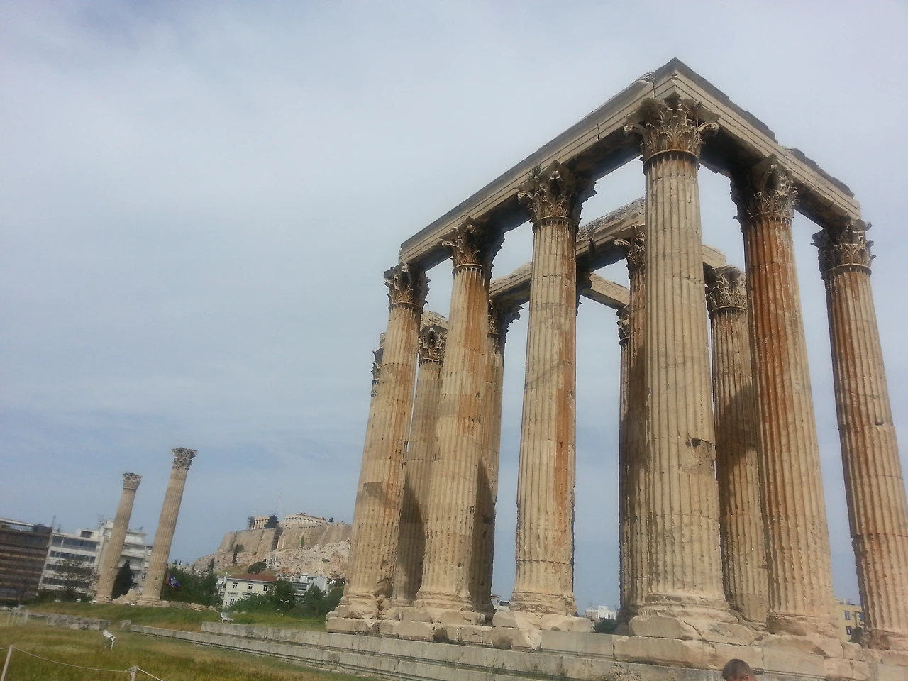 파르테논 신전을 향해 걷다 보니 뭔가 공원 같은 곳에 오래된 것 같은 건축물이 보인다. 바로 제우스 신전과 하드리아누스 문. 가까이 가서 보니 기둥이 어마어마하다.로마 시대에 만들어져서 현재까지 남아있다는 사실이 참으로 놀랍다. 파르테논 신전에 대한 기대감이 더 커졌다.