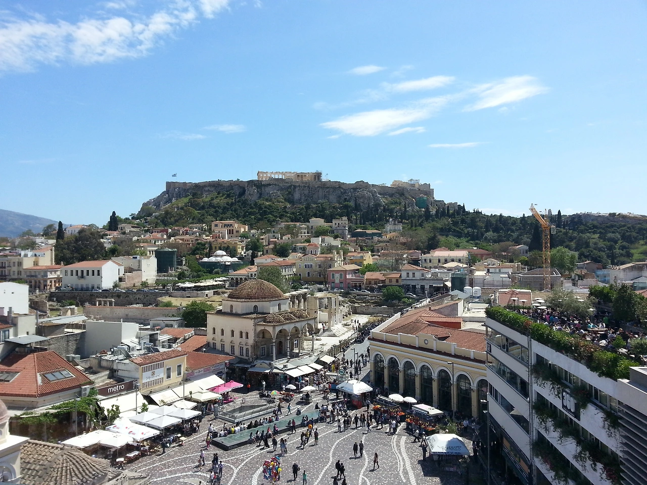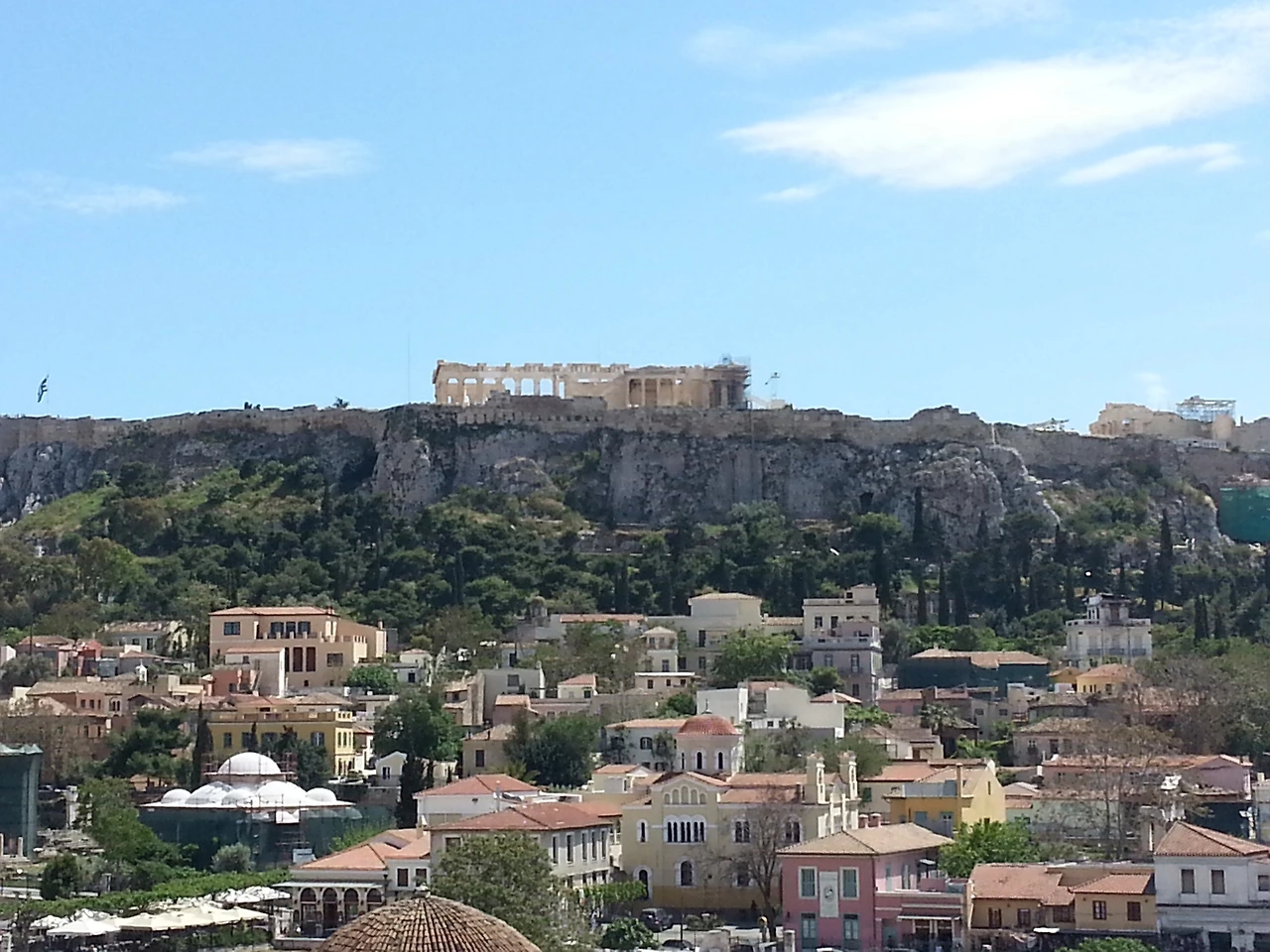 아크로폴리스 언덕과 파르테논 신전이 한눈에 보이는 카페에 자리를 잡았다.그리고 프라페 커피 한잔을 시켰다. 그리스에 와서 발견한 프라페 커피는 진한 아메리카노에 생크림을 많이 섞어 놓은 형태인데 정말 맛있다. 커피를 마시며 주변을 보니 맑은 날씨가 경치를 더 아름답게 해 준다. 우뚝 솟은 파르테논 신전은 아테네의 존재 이유를 더 상기시켜 주는 듯했다. 밤에 와도 멋있을 것 같은 느낌이었으나 혼자서 이 번화가를 다시 찾을 용기가 나지 않았다.(사람이 붐비는 이곳에 소매치기가 많다고 한다.) 파르테논 신전을 바라보며 한낮의 여유를 즐기고 있는 나 자신을 보니 참 뿌듯했다. 나른함이 몰려와 기지개도 펴본다.