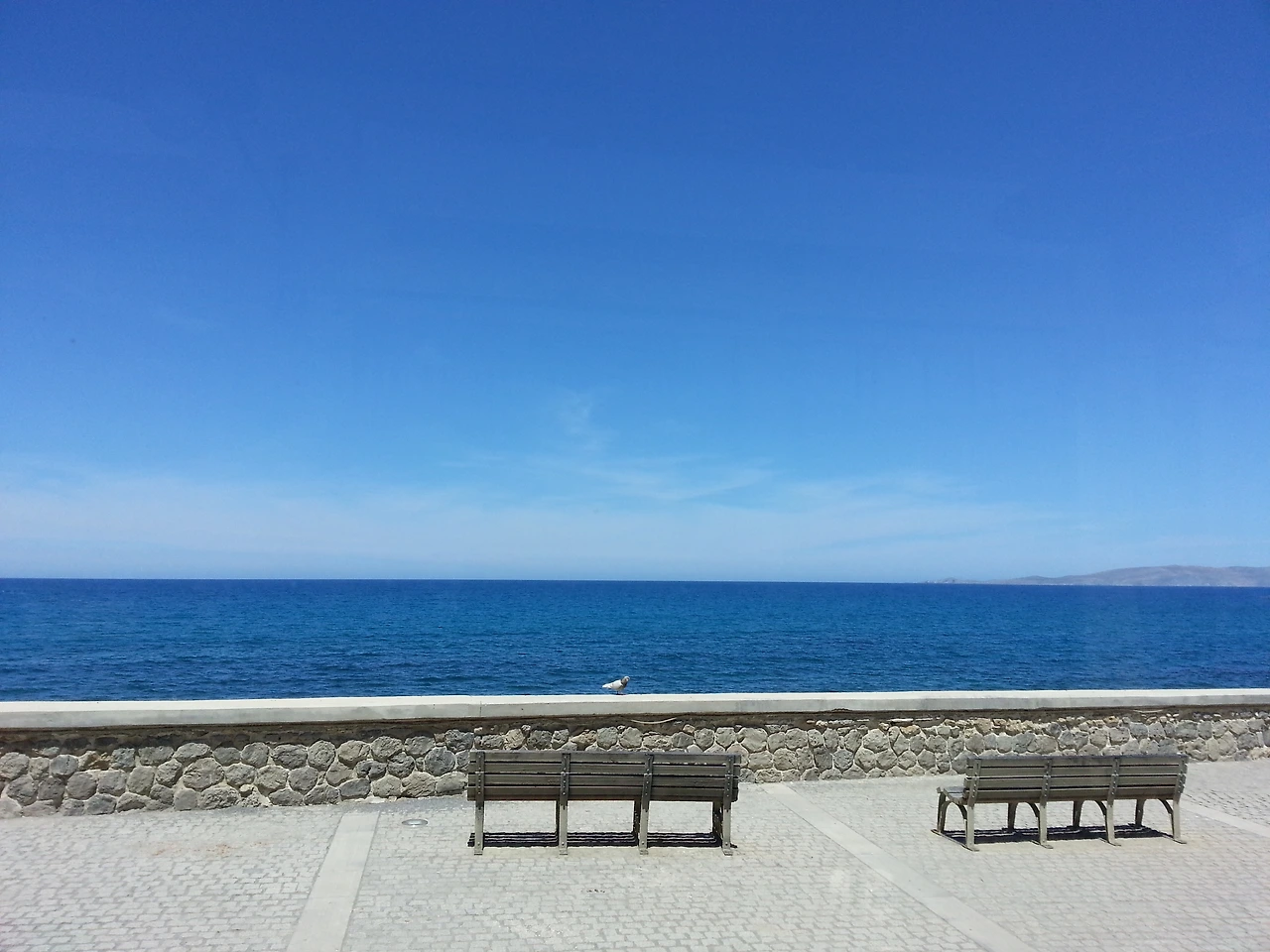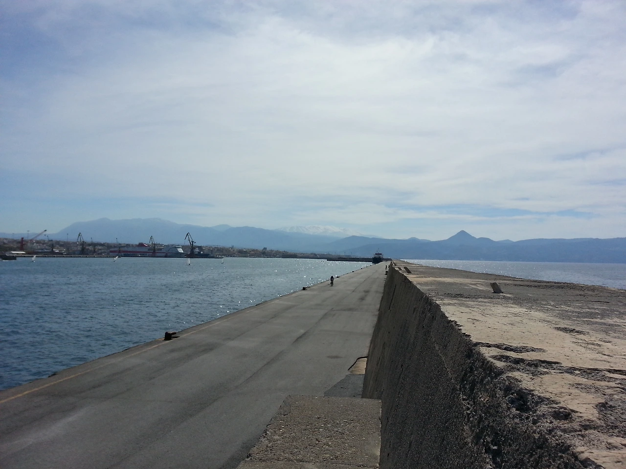 늦은 오후가 되어 무엇을 해볼까 망설이다가 베네치안 성채에 들어가 보기로 했다. 기나긴 방파제 길 초입에 있었는데 가까이 가서 보니 오늘은 휴무였다. 아쉬운 마음에 방파제를 조금 걸어보기로 했다. 운동하는 사람, 관광하는 사람 몇이 보인다. 귀로는 음악을 듣고, 눈으로는 바다를 바라보며 한참 걷다 뒤를 돌아보니 어느새 꽤 걸어왔는지 베네치안 성채가 작게 보인다.햇빛도 계속 내리쬐고, 다리도 슬슬 아파와 그만 돌아갈까 했지만 그냥 이 방파제의 끝을 보고 싶었다.약간 오기가 생긴 것도 사실이다. 이때부턴 나와의 싸움이었는데(왜 싸웠는지는 나도 잘 모르겠다.) 반드시 방파제 끝에 가서 쉬겠다는 일념으로 걸었다. 분명 조금 전까지는 산뜻한 봄날의 산책이었는데 지금은 목표 달성을 위해 달리는 파워 워킹이 되어있었다. 약 50분에 걸친 사투 끝에 드디어 도착했다.