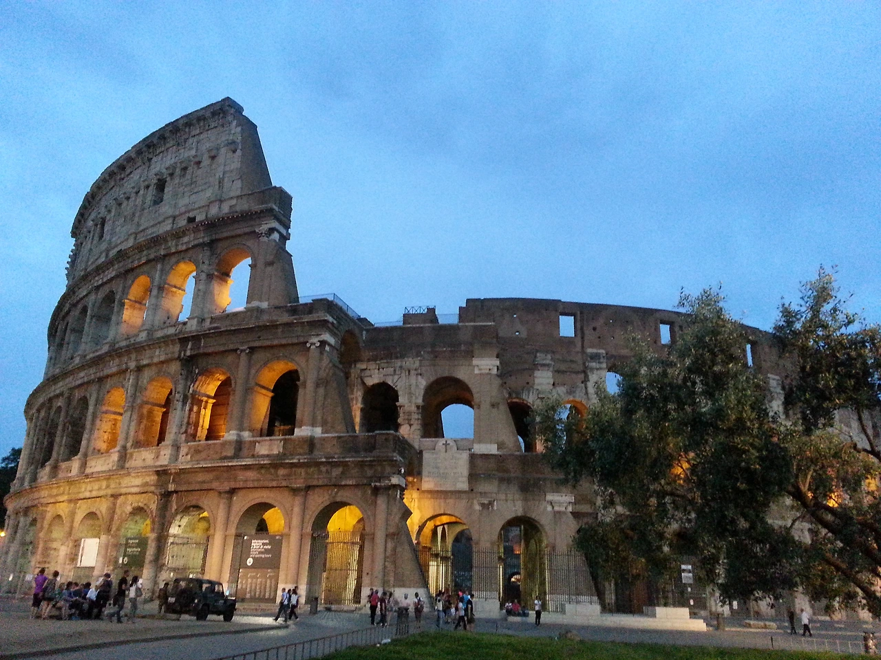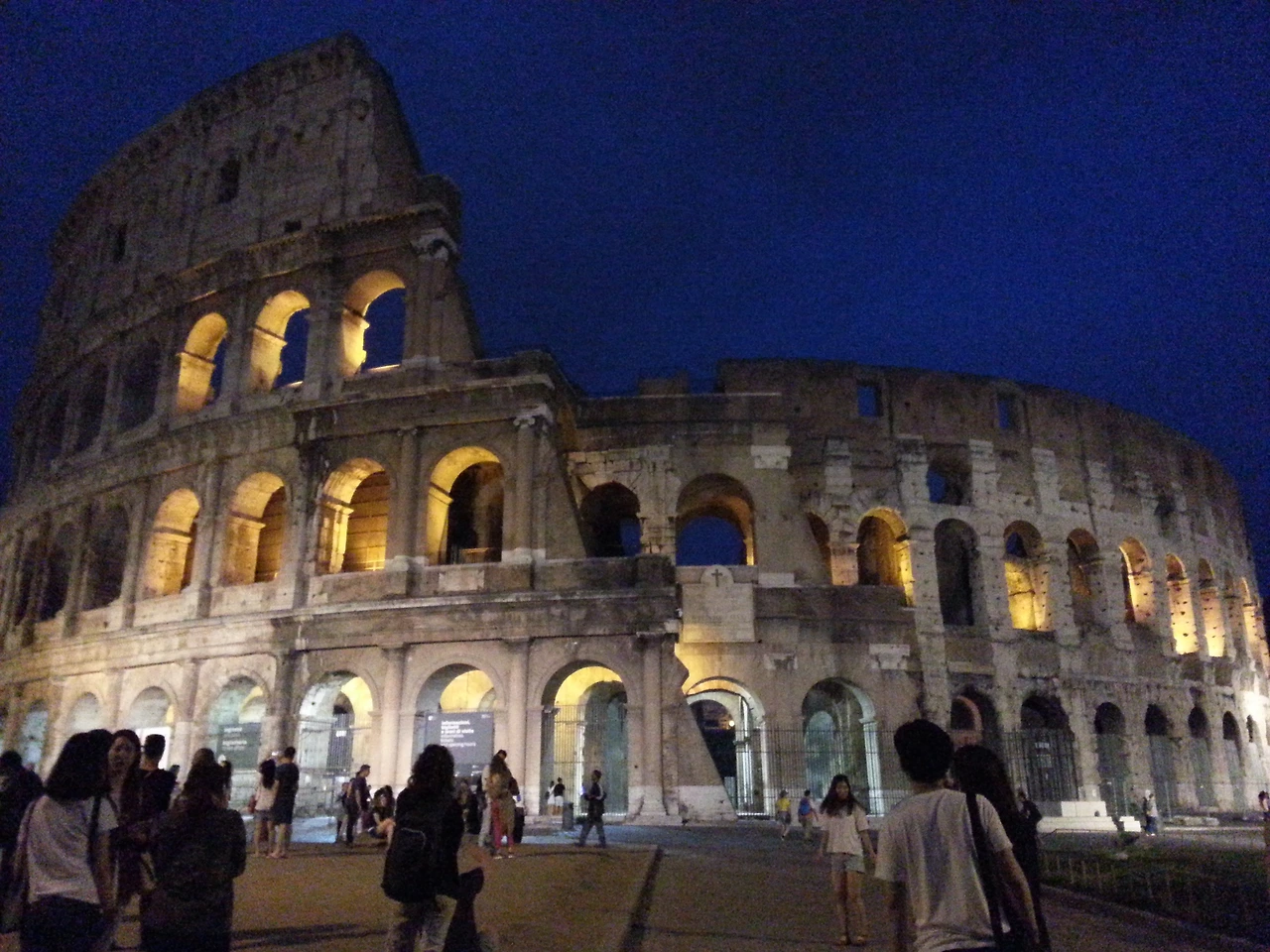 가이드님은 콜로세움에 대해 이런저런 설명을 이어가셨는데 영화 글래디에이터를 봤다면 훨씬 더 친숙할 건물이라 하셨다. 검투사의 모습을 실감 나게 묘사한 영화인데 나는 그것을 정말 인상 깊게 봤던 터라 콜로세움이 왠지 반가웠다. 사람들의 함성소리가 울려 퍼지는 것 같았다. 이탈리아 로마에 와서 본 첫 건물. 그게 콜로세움이라 임팩트가 무척 컸고, 밤에 봤기에 더 아름다워 로마에서의 여행이 더욱더 기대가 되었다. 우리는 해가 완전히 질 때까지 이곳에 있었다.