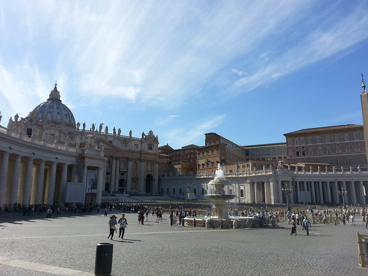 성 베드로 성당을 나오며 광장의 모습을 사진으로 남겼다. 광장도 무척이나 넓었다. 드넓은 광장에선 여러 가지 행사도 많이 열리는 듯했다. 성 베드로 성당의 푸른색 반구형 지붕인 쿠폴라에 올라가면 동그란 광장과 쭉 뻗은 길이 마치 열쇠 구멍처럼 보인다기에 확인해보고 싶었다. 하지만 대기줄이 너무 길어 쿨하게 포기하고 인터넷에서 검색해서 보기로 했다.(정말 그랬다.)