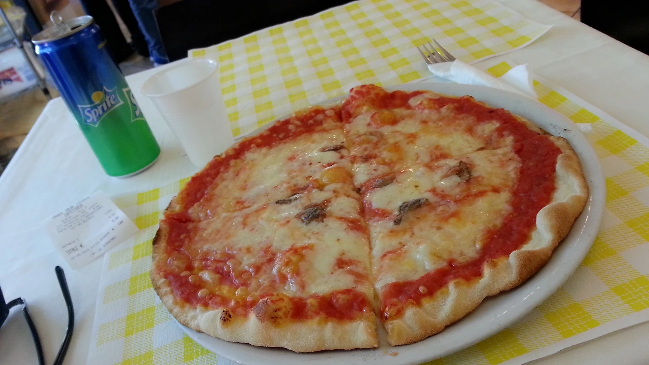 저녁은 이탈리아 음식인 피자를 선택했다. 이탈리아에선 아무 피자집에나 들어가서 먹어도 맛있다는 친구의 말이 생각나 진짜 맛집 검색도 하지 않고 눈에 띄는 피자집에 찾아 들어갔다.피자를 본 고장에서 먹어볼 수 있다는 기쁨에 마음이 들떴다.
