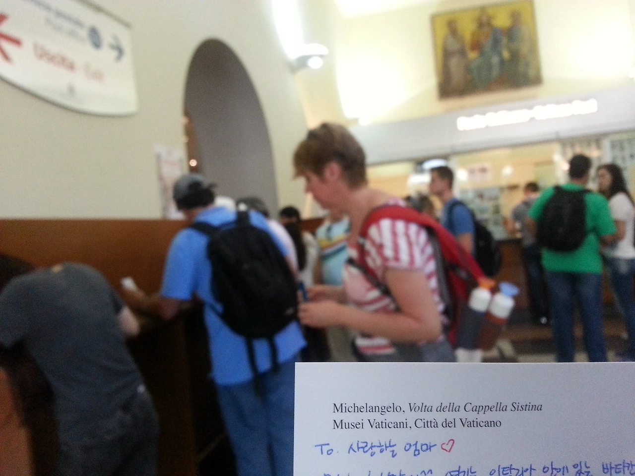 박물관 안에서 간단한 점심을 먹고, 자유 시간이 있어 엄마에게 엽서를 한 장 써서 보냈다. 쑥스러워 말로 다 못한 마음을 적어 보내며 사랑하는 가족들에 대한 애틋한 마음을 전했다. 좋은 곳에 와서 좋은 것을 보니 사랑하는 사람들 생각이 유독 많이 난다. 기회가 된다면 가족들과 함께 이곳에 꼭 같이 오고 싶었다.