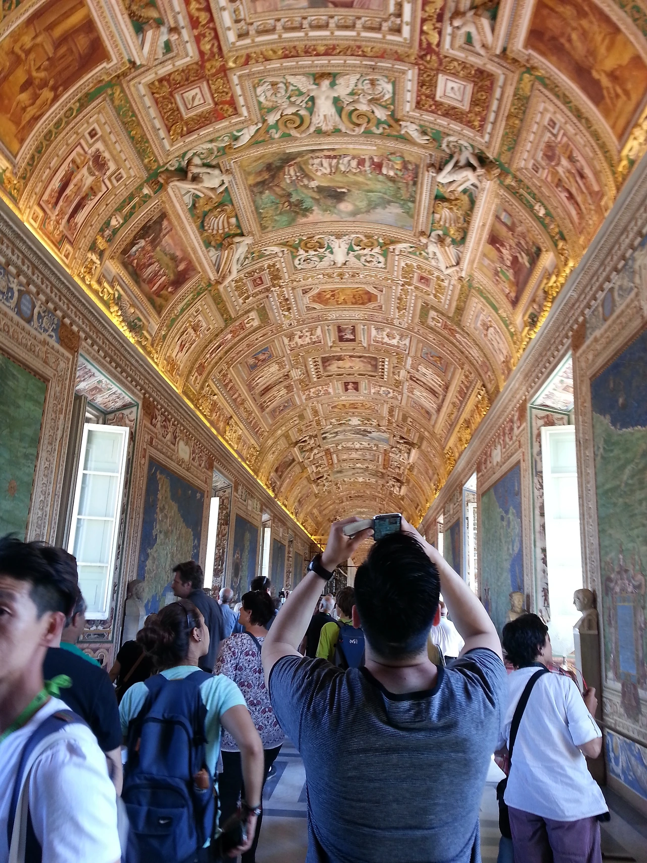 입구는 크고 웅장했다. 마치 성에 들어가는 기분이 들었다. 많은 사람들이 줄지어 안으로 들어갔다. 바티칸 박물관은 그림 작품이 주를 이루고 있었다. 학창 시절 교과서에서 봤던 그림들과 대학 교양 미술시간에 봤던 그림들이 총망라되어 있었다. 같이 미술 교양 수업을 들었던 친구가 그때 배운 그림들이 이탈리아를 여행하는데 매우 도움이 되었다고 이야기했었는데 과연 그랬다.