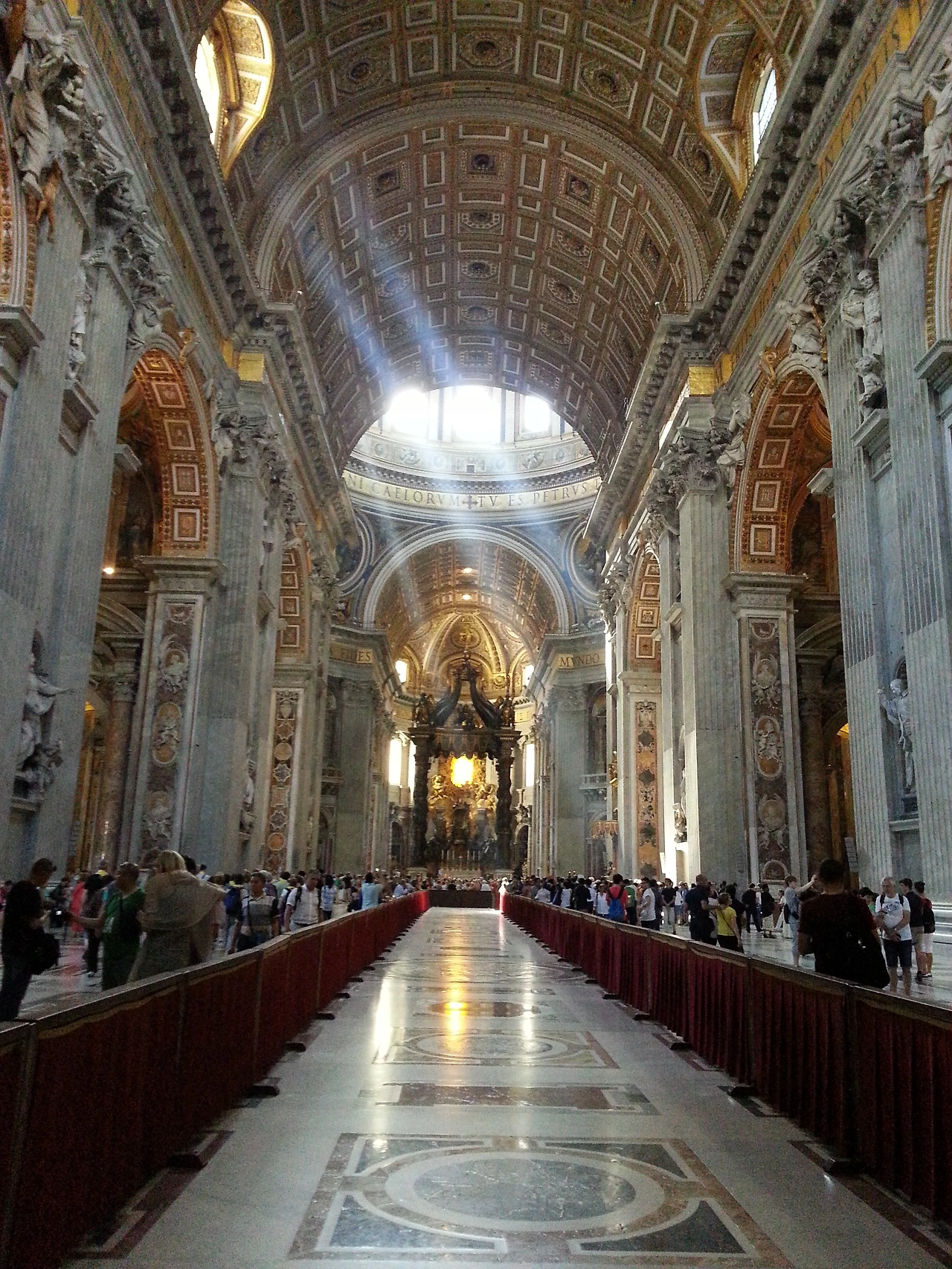 마지막 장소는 성 베드로 성당. 크기가 어마어마하다. 좌중을 압도하는 크기와 바티칸이 주는 상징성이 더해지니 그냥 감탄밖에 안 나온다. 성당 내부로 들어오니 화려한 조각들과 벽화들이 가득하다. 천정에 있는 여러 개의 창문으로 자연광이 들어와 성당 안을 비추는데 분위기가 매우 영험해 성당 분위기가 물씬 풍겼다.