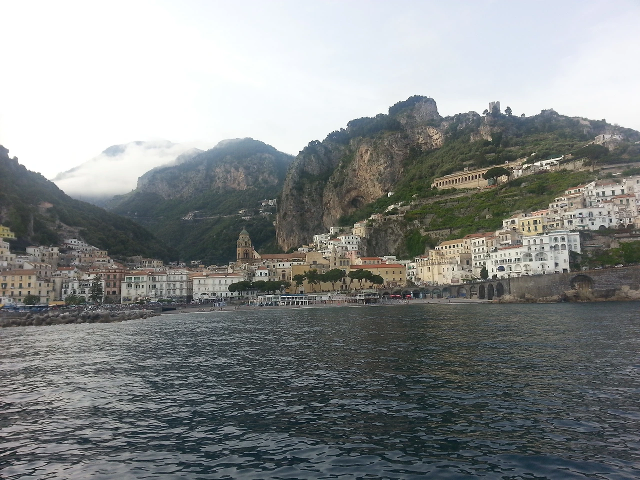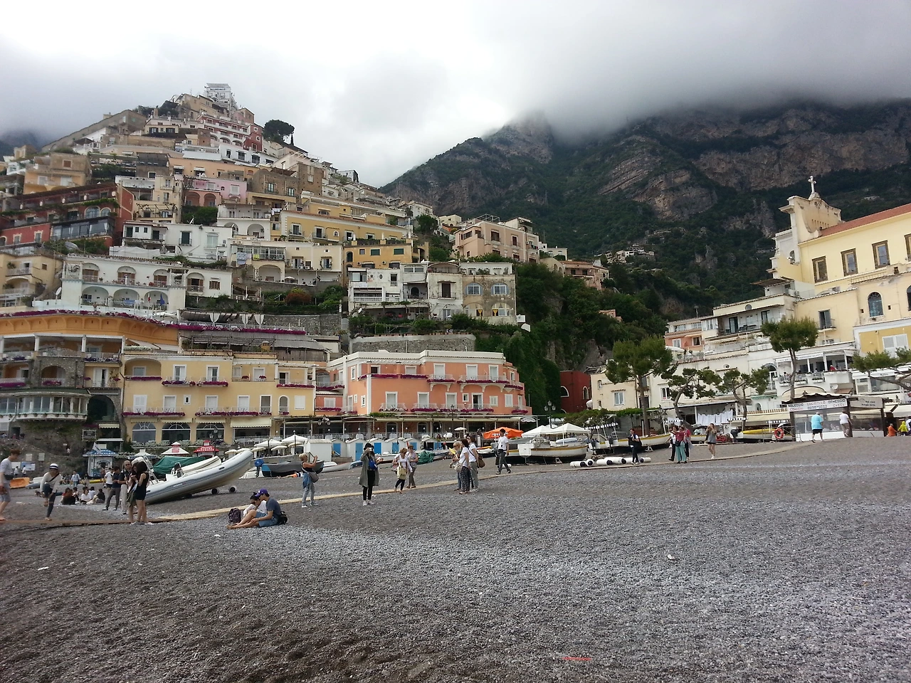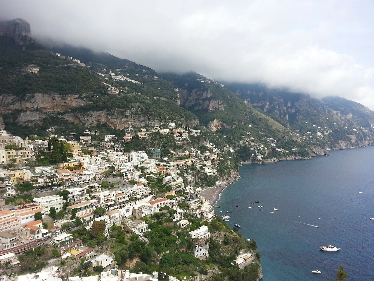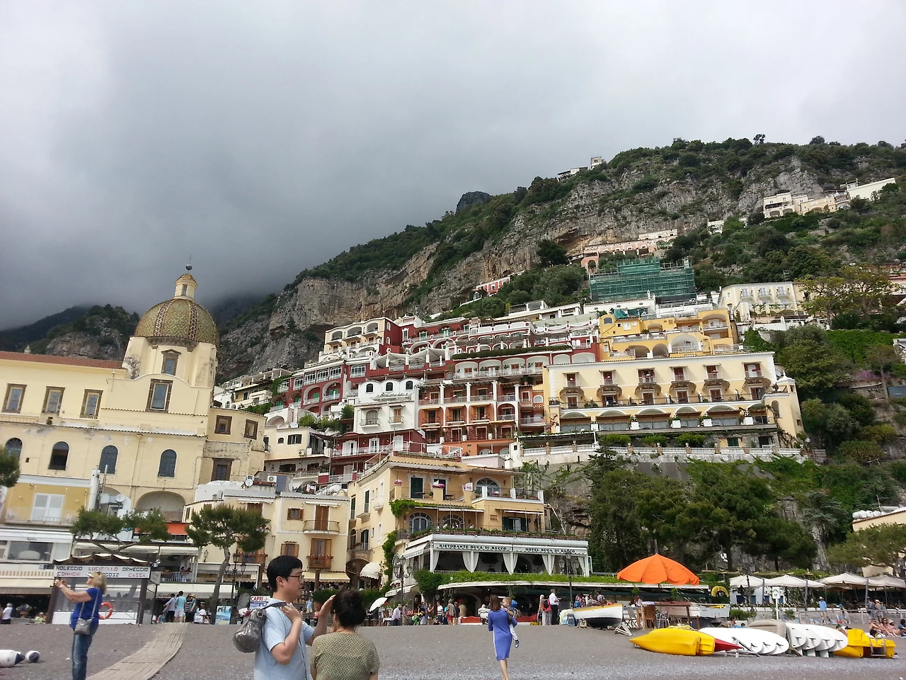위쪽에서 바라본 포지타노의 해변. 가이드님이 말씀하셨던 뷰 포인트였다. 가파른 경사 위에 아기자기하게 놓인 건물들과 바다가 절묘하게 조화를 이루고 있었다. 잔뜩 낀 구름 때문에 푸른 하늘은 볼 수 없었지만 뭔가 영험한 기운을 내뿜고 있는 것 같아 전체적인 풍경이 신비롭게 느껴졌다.