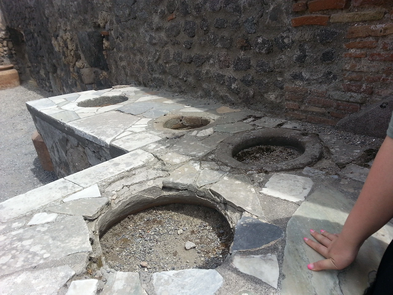 화산으로 뒤덮였었던 도시는 지금 많이 복원된 상태였는데 보존이 매우 잘되어 있었다. 옛 도시의 모습이라 집, 주방, 수도시설, 원형극장, 교회 등이 한 곳에 모여 있었다. 가이드님의 설명을 들으며 이곳저곳을 구경했는데 이해가 쏙쏙 되니 보는 재미가 있었다. 내 머릿속에는 터키에서부터 그리스, 로마를 거치며 보았던 고대 도시들의 모습들이 가득 그려졌는데 내 나름대로 비교해 볼 수 있어 더욱더 흥미로웠다.